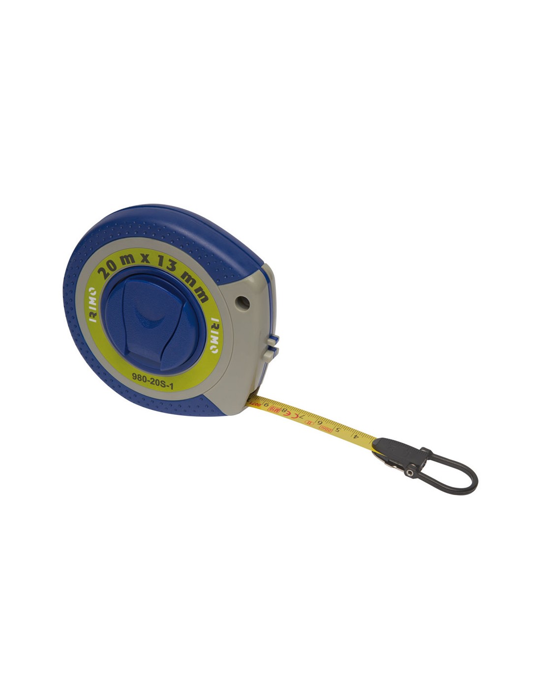 Cinta métrica acero 20 m x 13 mm. precisión de claseii. caja de abs con mango de goma térmica. hoja de acero 50c de alta calidad. tope con anilla y mordaza plegable. clip para cinturón. mecanismo de enrollado rápido. caja individual que puede colgarse. conforme a la directiva sobre comercialización de instrumentos de medida