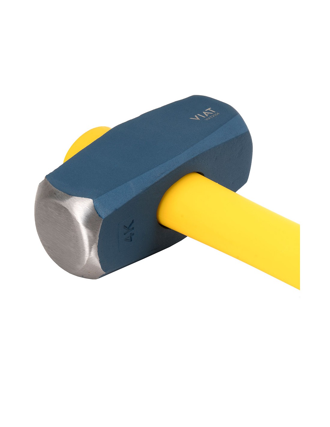 Maza con cabeza de acero forjado, endurecido en las zonas de golpeo, mango bimaterial con núcleo de fibra de vidrio para mayor resistencia y agarre de elastómero, unión cónica, para trabajos de demolición y golpeo, dimensiones 158 x 910 x 66 mm. peso 4,5 kg