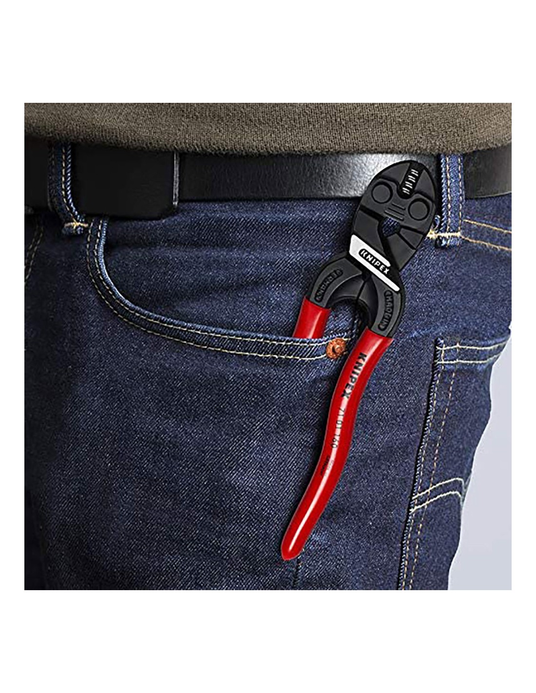 Cortabulones compacto cobolt® 160mm. cabeza pequeña y estilizada para una excelente accesibilidad. compacto y potente: corta bulones, clavos, remaches etc. hasta ø4,4mm. filo muy resistente y templado por inducción para alambres finos y duros, tornillos y muelles, dureza de los filos de aprox. 64 hrc. reducido esfuerzo por un eficiente mecanismo de multiplicación. el material a cortar no se desliza debido al filo tratado con láser. con superficie de agarre debajo de la articulación para agarrar y trefilar alambres a partir de ø1,0mm. dimensiones:160x45x14mm