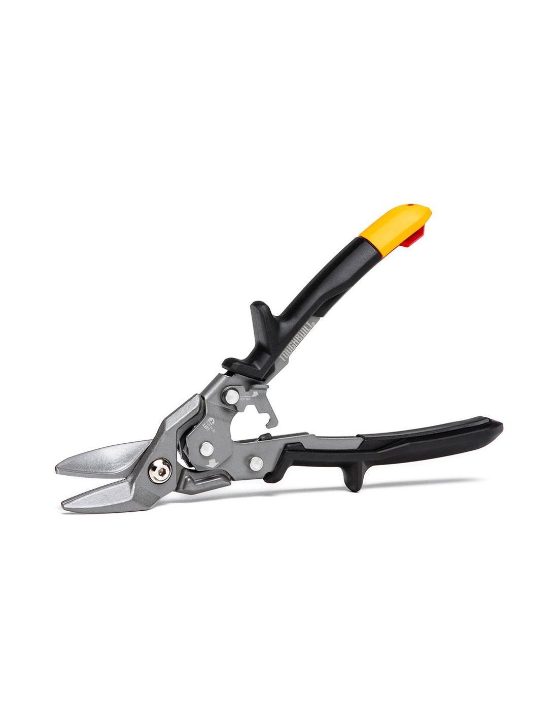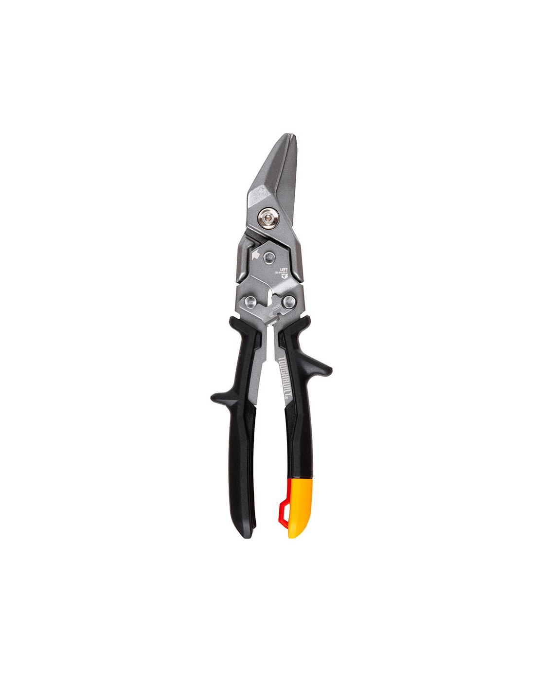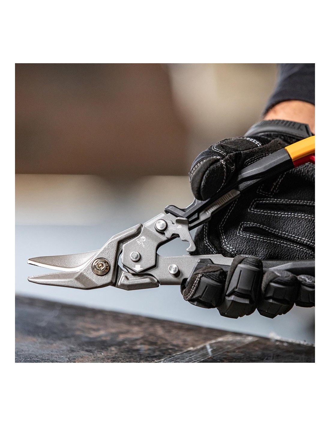 Tijera aviación cortachapa corte izquierda, corta acero inoxidable hasta calibre 22 y acero laminado en frío hasta calibre 18 dos posiciones de corte: con agarre hacia atrás para aplicar mayor fuerza de palanca y con agarre hacia adelante para obtener mayor control hojas forjadas con filo de corte endurecido por inducción para realizar 10 veces más cortes perfectas para cortar hacia la izquierda agujero para cordón mecanismo de resorte para lograr un corte rápido y sin esfuerzo