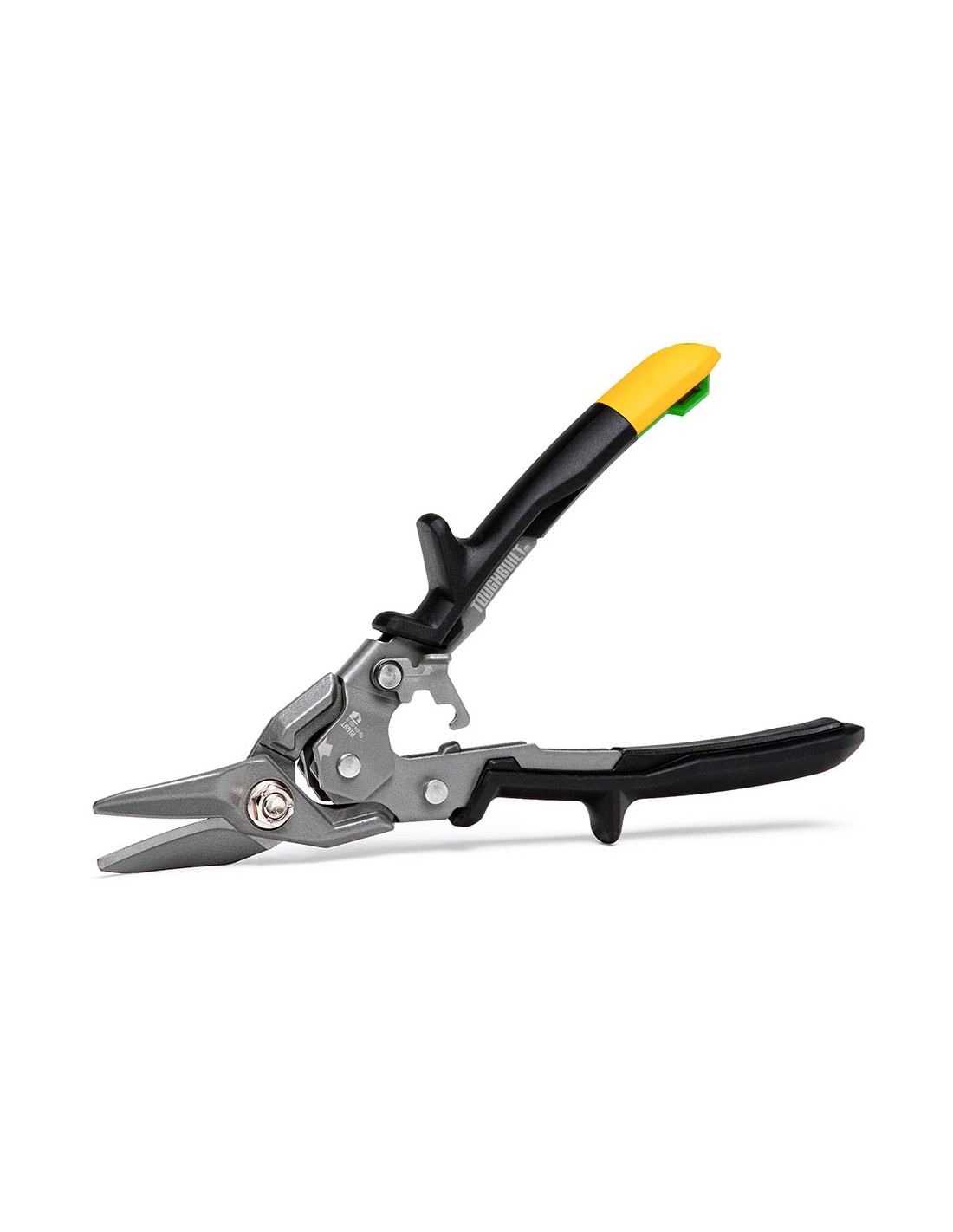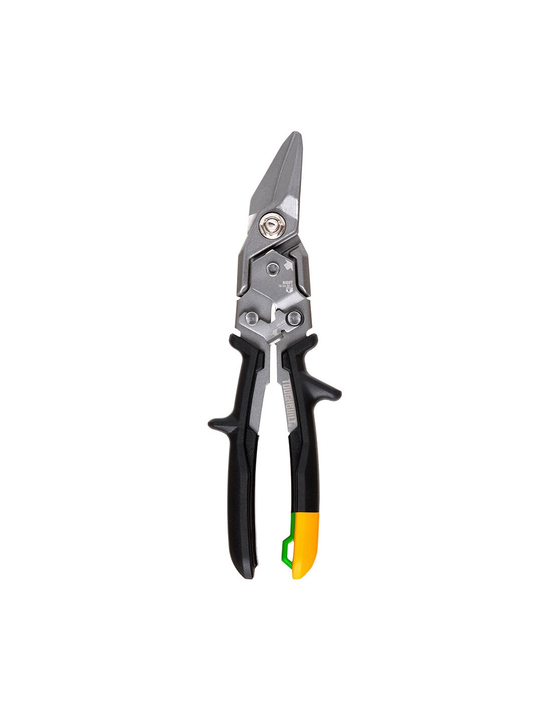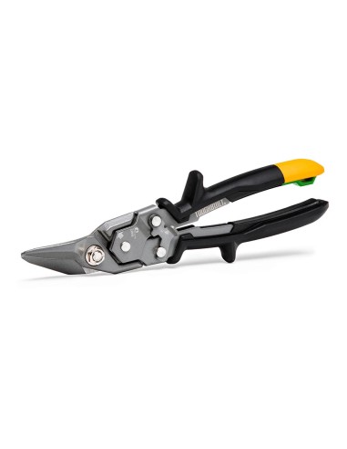 Tijera aviación cortachapa corte derecha, corta acero inoxidable hasta calibre 22 y acero laminado en frío hasta calibre 18 dos posiciones de corte: con agarre hacia atrás para aplicar mayor fuerza de palanca y con agarre hacia adelante para obtener mayor control hojas forjadas con filo de corte endurecido por inducción para realizar 10 veces más cortes. perfectas para cortar hacia la izquierda, agujero para cordón. mecanismo de resorte para lograr un corte rápido y sin esfuerzo