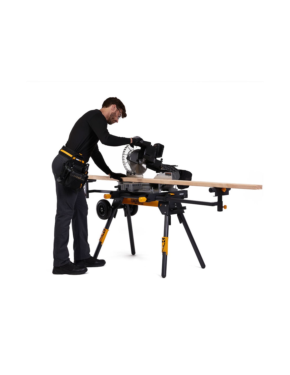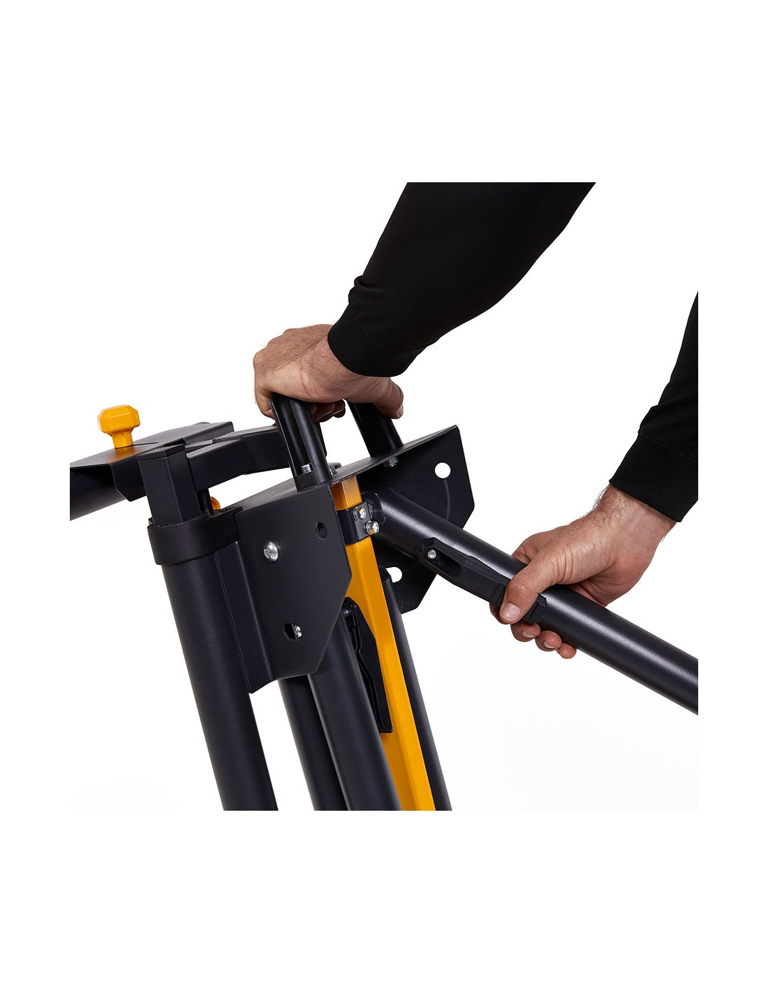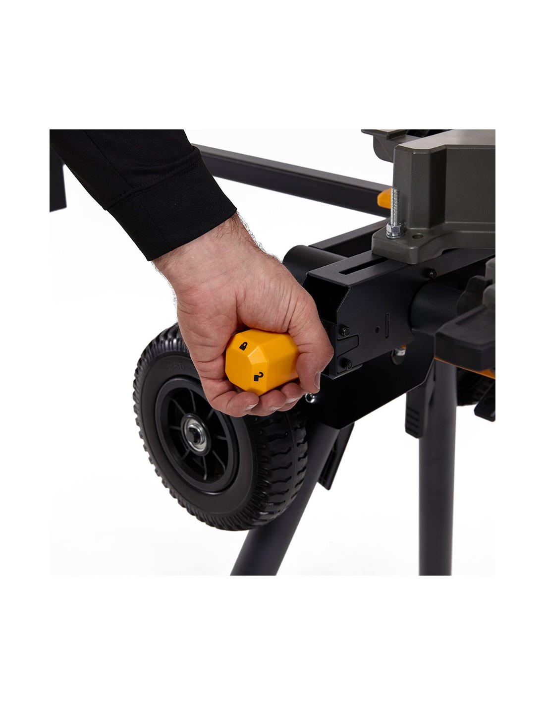 Soporte universal para ingletadora compatibilidad universal con la mayoría de las marcas de ingletadoras. 2 soportes de trabajo que se extienden hasta 195cm/77" pulgadas. las resistentes ruedas de caucho macizo de 21cm/8,3" ruedan. sin esfuerzo por terreno accidentado, son estables y nunca se desinflan. los soportes universales permiten usar la sierra separada de la base. con una superficie nivelada. los seguros giratorios de los soportes son robustos y fáciles de usar. topes de trabajo a izquierda y derecha. las clavijas para soporte de materiales permiten un almacenamiento. seguro y simple de los materiales apartados del suelo. los pasadores se pueden utilizar con una sola mano para extender. el área de soporte de materiales. el travesaño de 6cm/2,4 pulgadas crea una estructura extremadamente sólida. el sistema de bloqueo de las patas con liberación rápida hace que se pueda, montar y desmontar de forma sencilla
