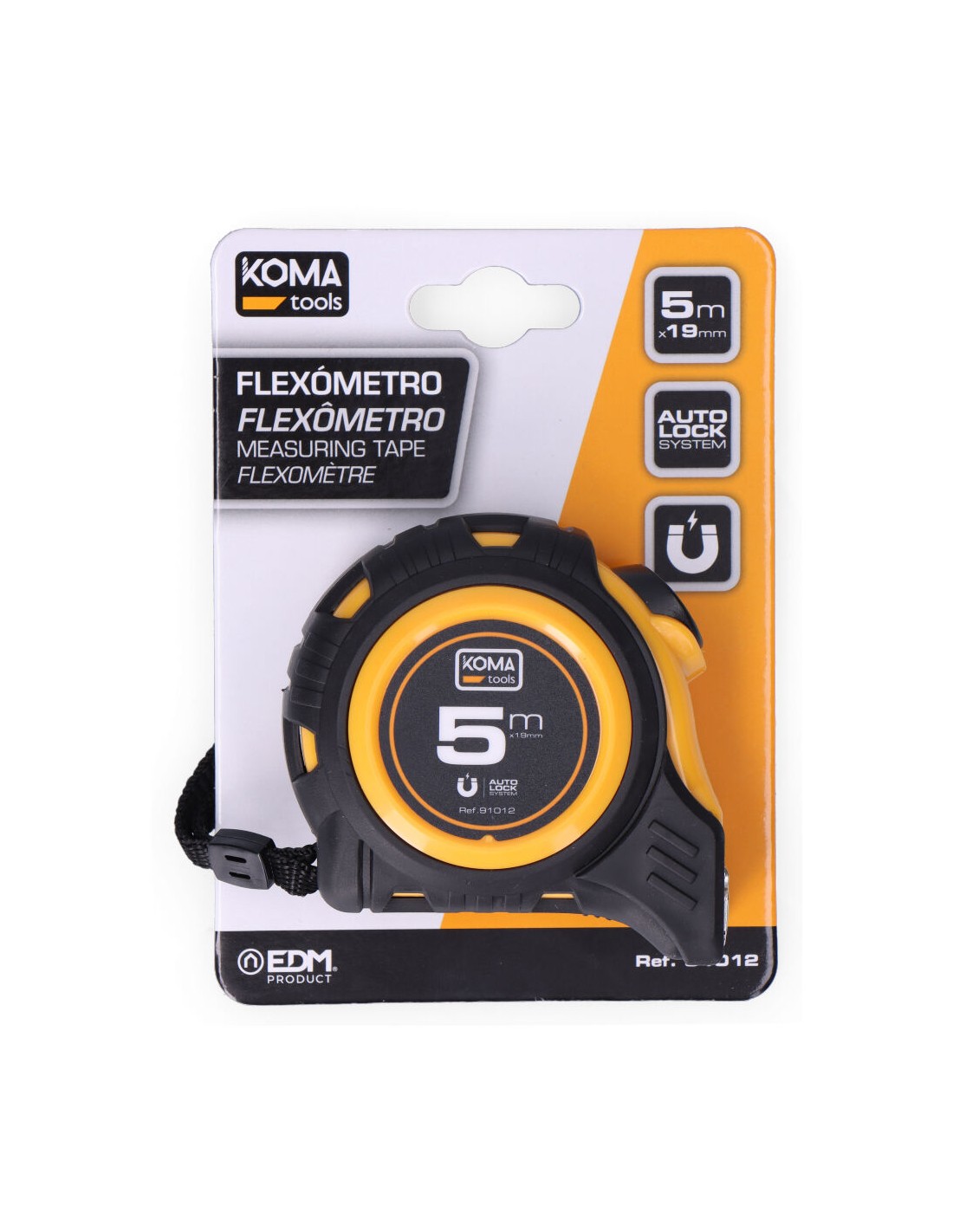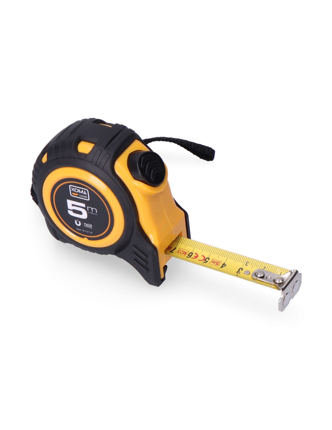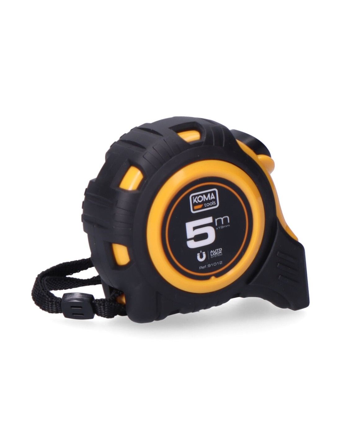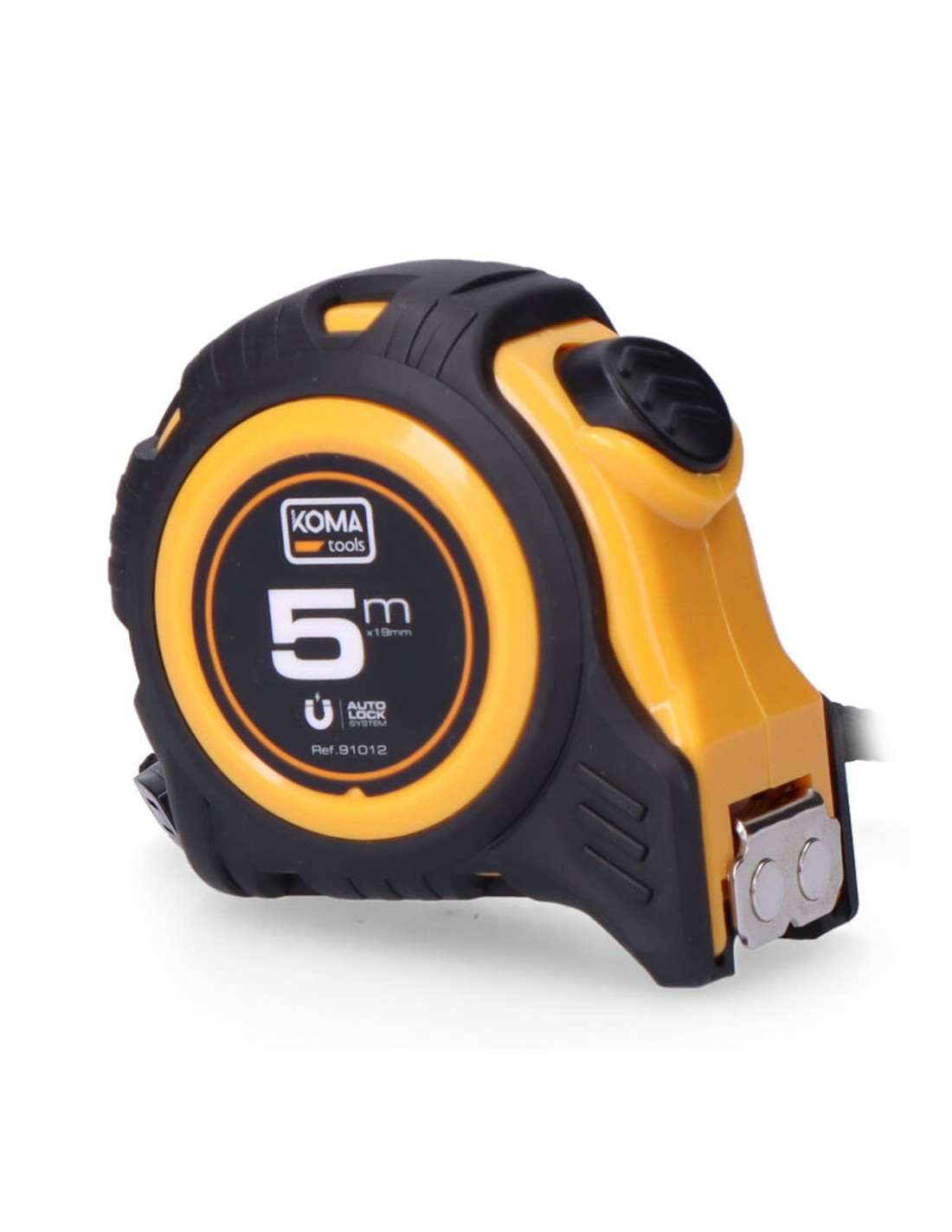 Flexómetro 5m x 19mm abs magnet koma tools. cuerpo fabricado en abs antideslizante. gancho magnético. una posición de bloqueo y sistema auto lock. clip para cinturón. grosor de la cinta 0,115mm, cinta numeración amarilla acabado mate