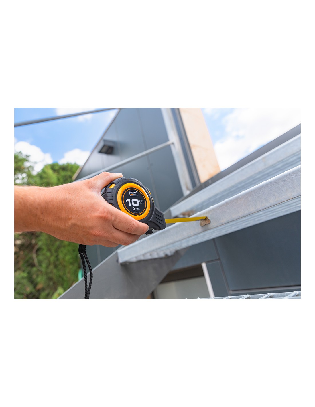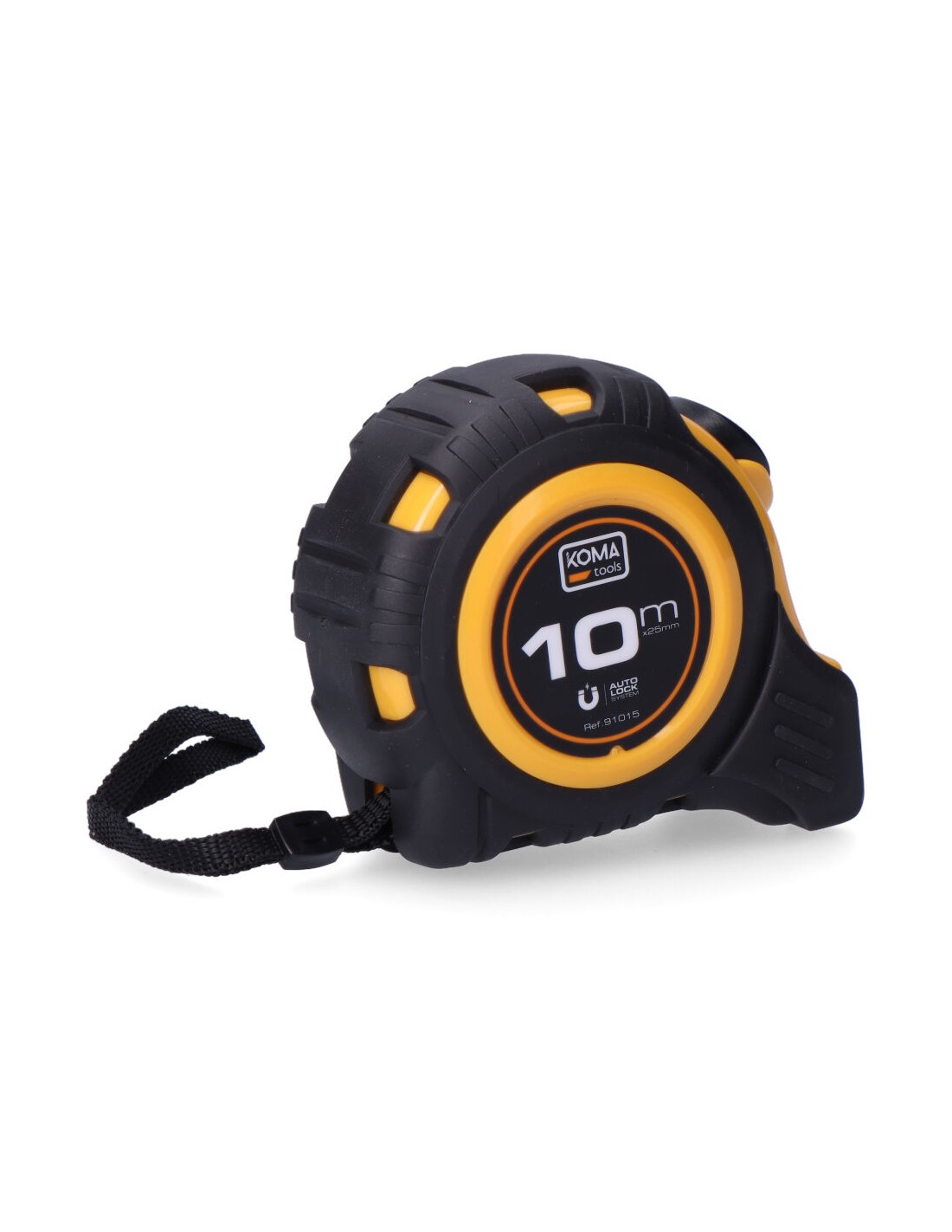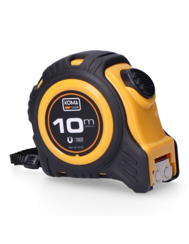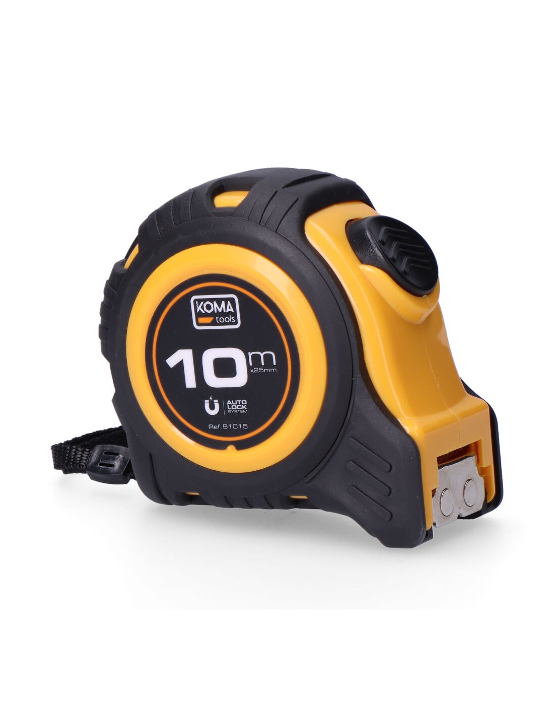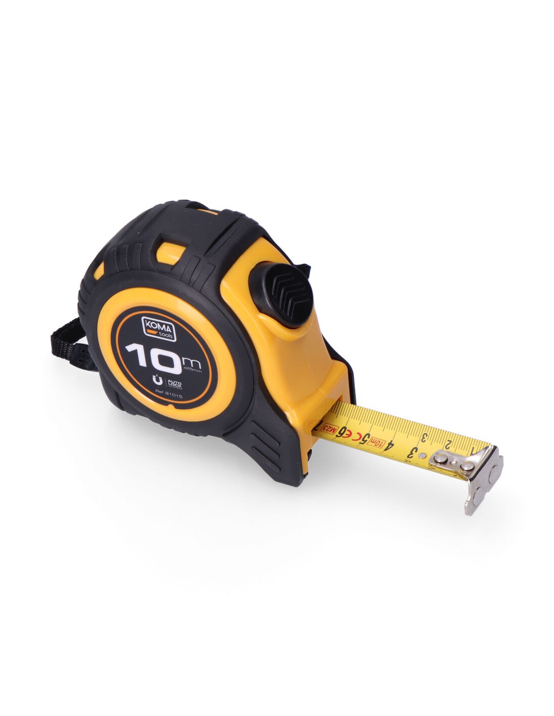 Flexómetro 10m x 25mm abs magnet koma tools. cuerpo fabricado en abs antideslizante. gancho magnético. una posición de bloqueo y sistema auto lock. clip para cinturón. grosor de la cinta 0,115mm, cinta numeración amarilla acabado mate