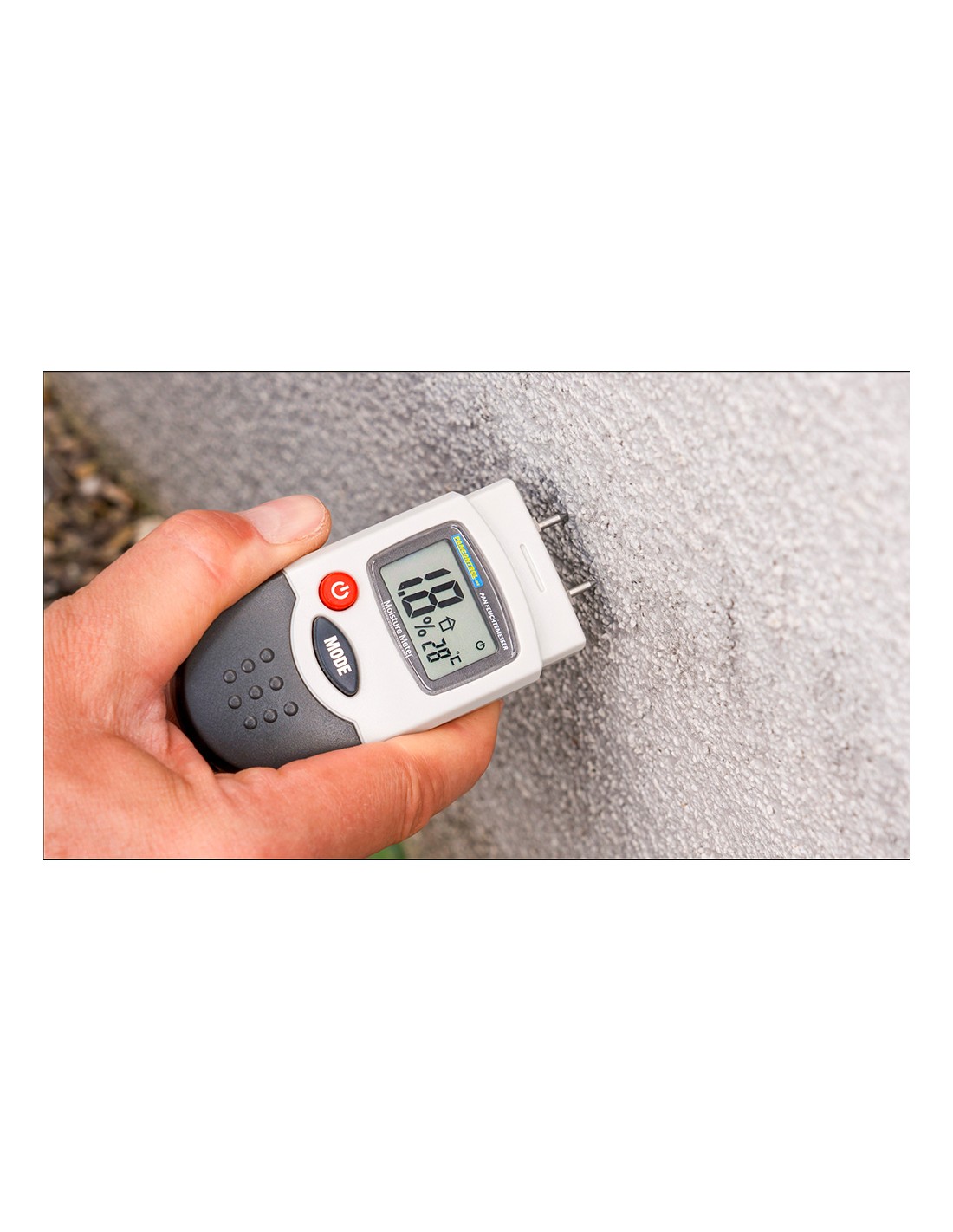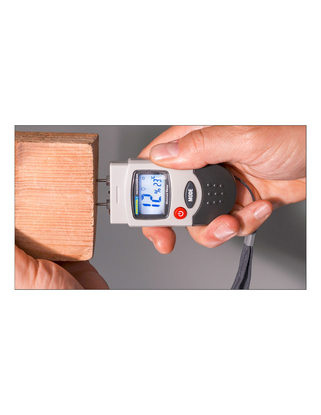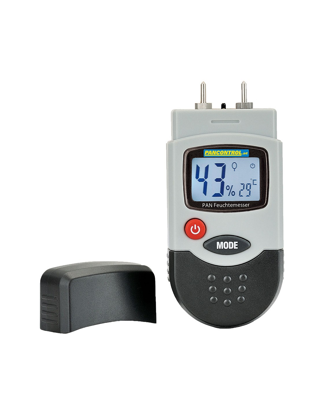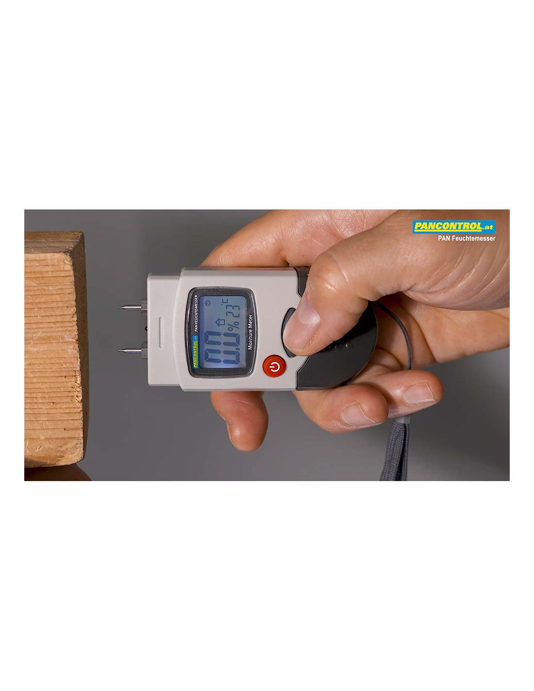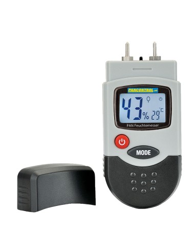 Medidor de humedad para madera y materiales de construcción pancontrol. indicador lcd grande para madera y materiales de construcción con 6-44% y 0,2-2% de humedad respectivamente. desconexión automática.