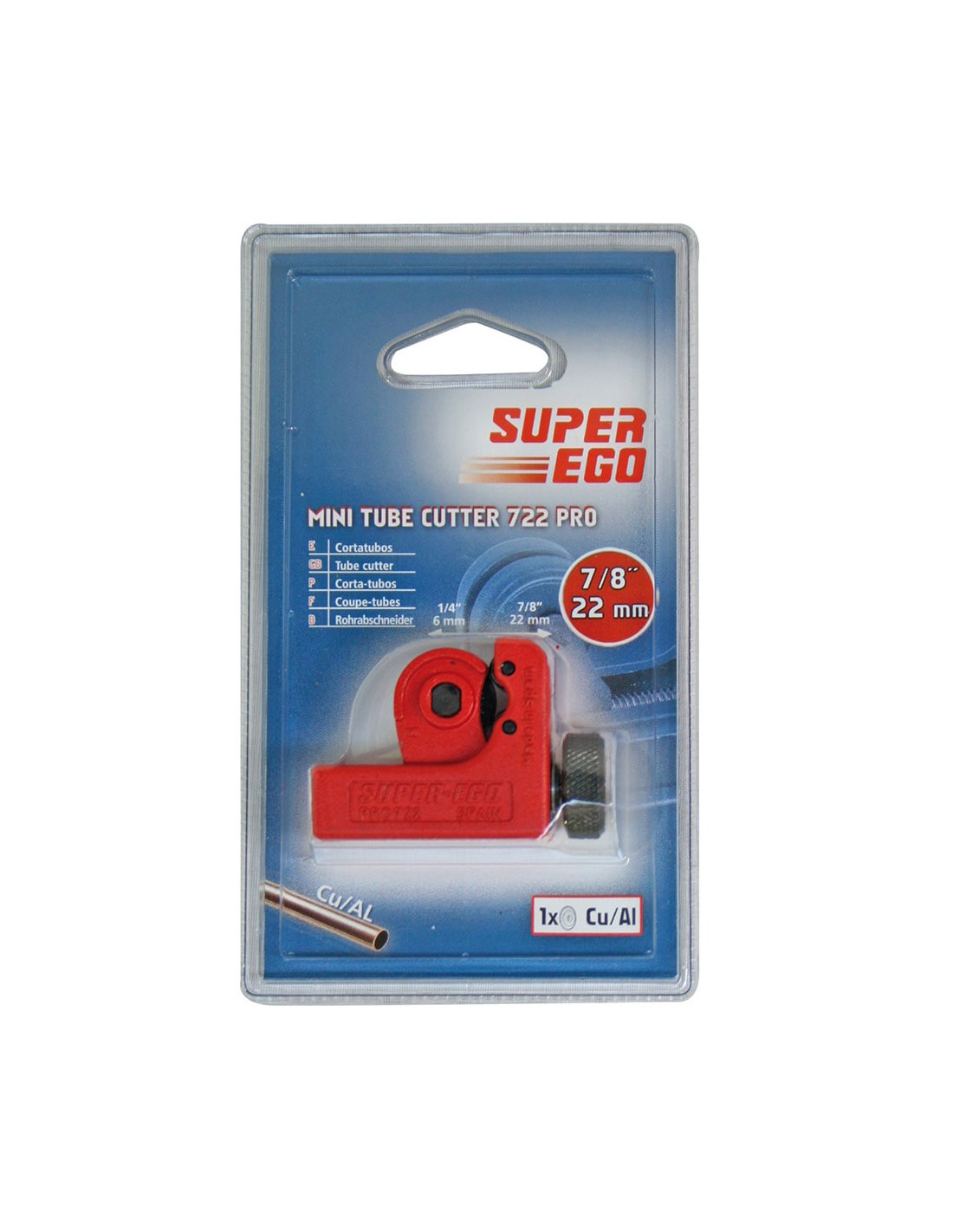 Cortatubos cu 722 pro- 6-22mm 722200000 super ego. cuerpo compacto y corredera de pequeñas dimensiones para trabajos en espacios muy reducidos. base reforzada. rodillos con alojamiento para corte cerca del abocardado. gran pomo de avance moleteado.