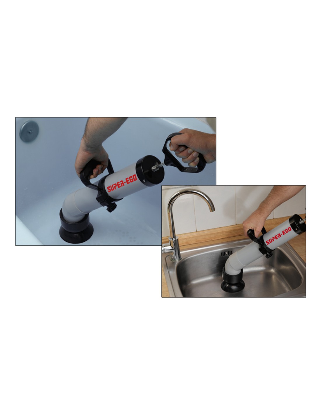 Desatascador por aire. indicada para eliminar pequeños atascos domésticos en lavabos, fregaderos, bidés, etc. fácil manejo. con asa adicional que se puede mover para facilitar el desatasco. incluye adptadores específicos para desatascar inodoros, lavabos y duchas. capacidad de bombeo: 1,3 litros