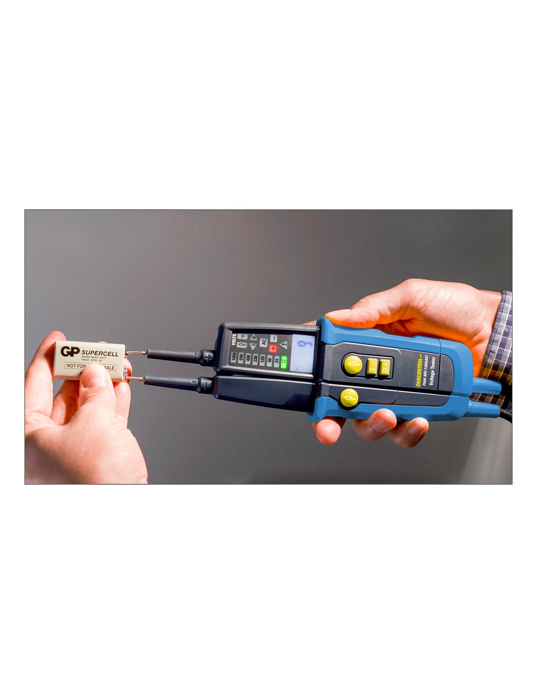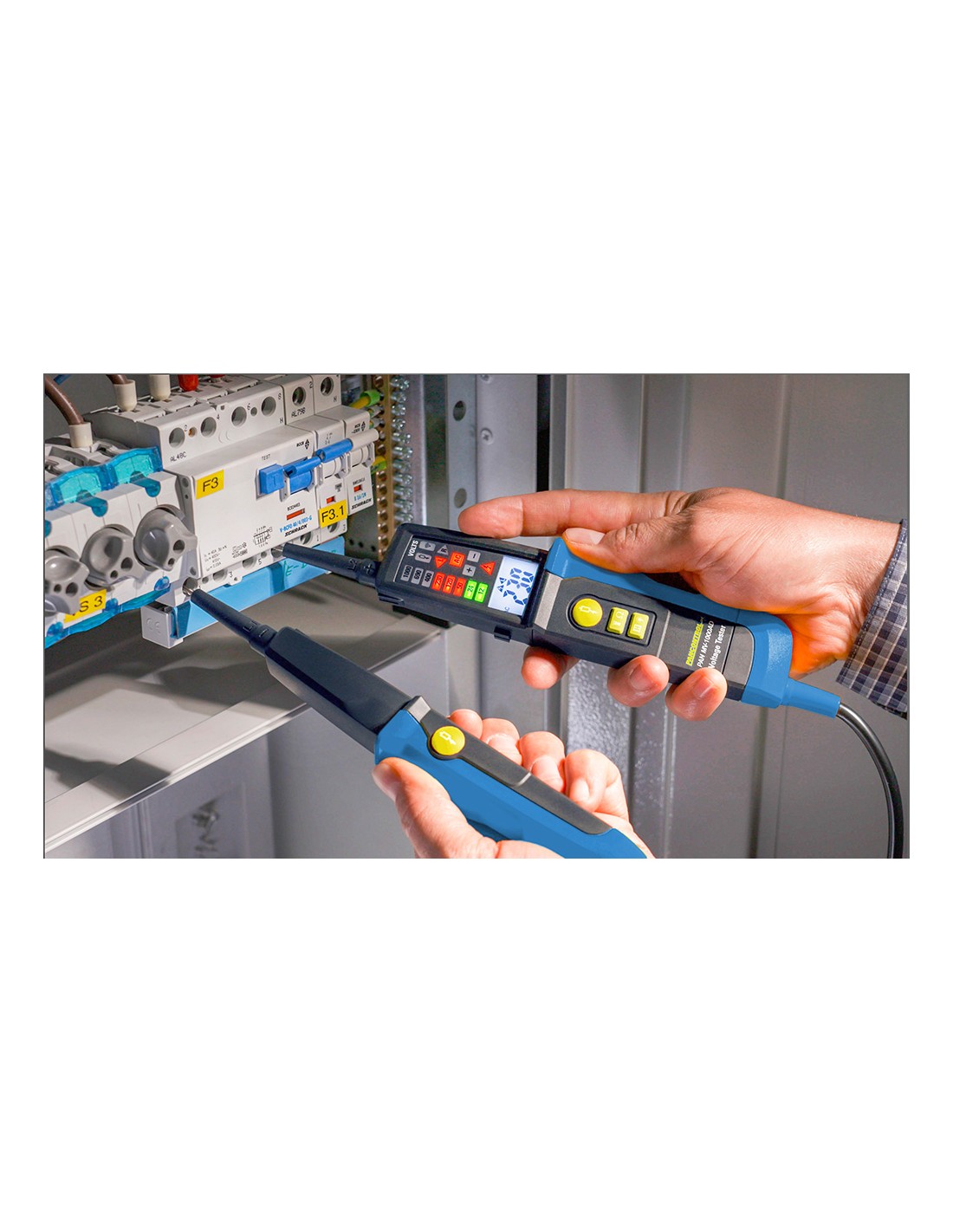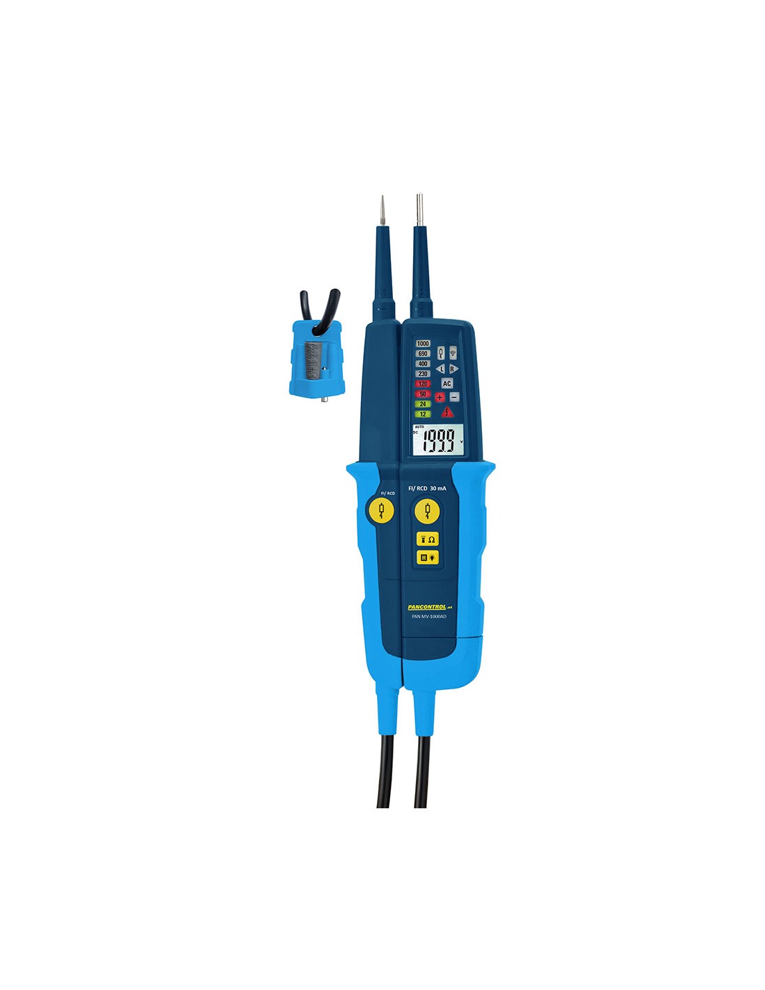Probador de voltaje y continuidad pan mv-1000ad 1000v pancontrol. led analógico y pantalla lcd digital retroiluminada. pantalla de campo giratorio de 2 polos.carga conmutable para suprimir tensiones parásitas con el finde destinguir tensión "real" de la tensión parásita. para bajas tensiones hasta 24v verde, para tensiones peligrosas de 50v: rojo. prueba dcr de 1 polo con alarma acústica. linterna led. desconexión automática. ip65. tüv gs.