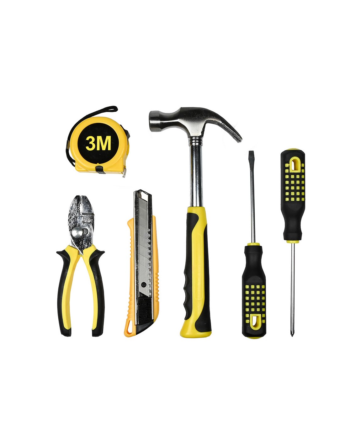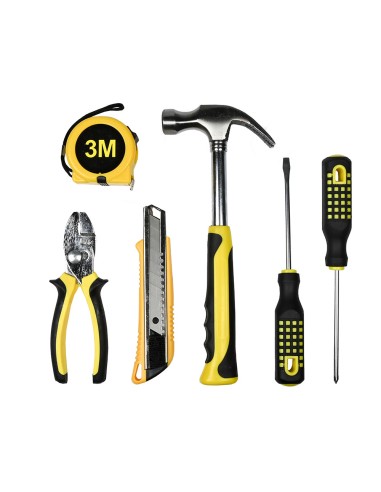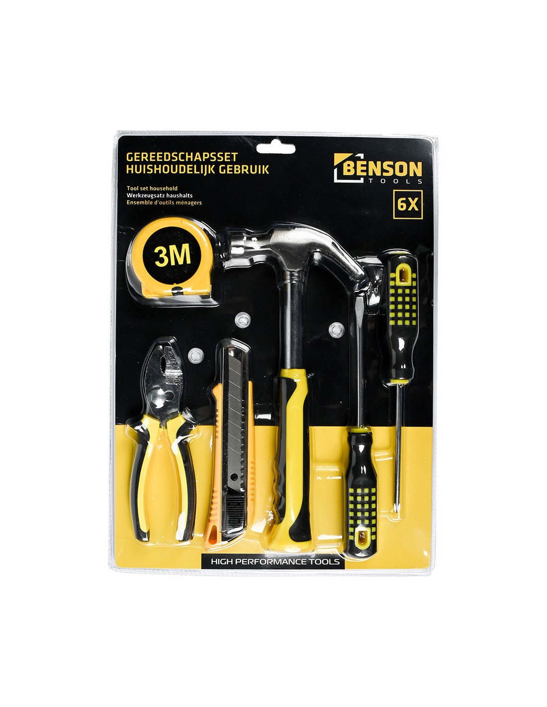 Set herramientas 6 unid. benson. composición: flexómetro 3m x16mm, martillo de garra, cutter, destornillador plano de 5x100mm, destornillador phillips de 5x100mm, alicates combinados.