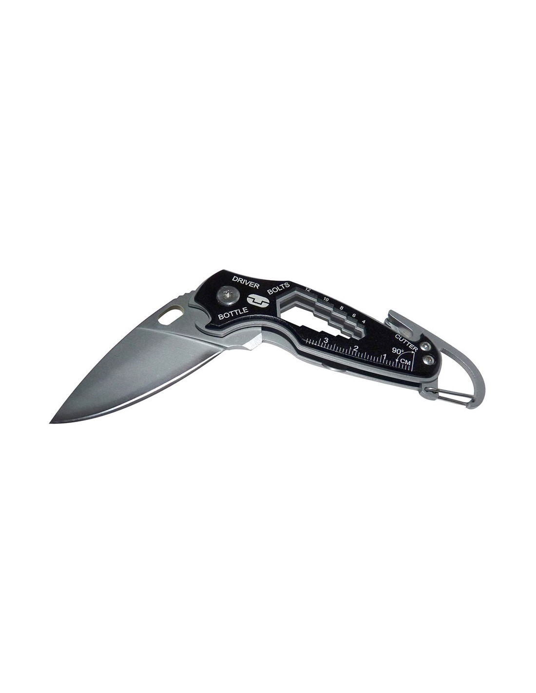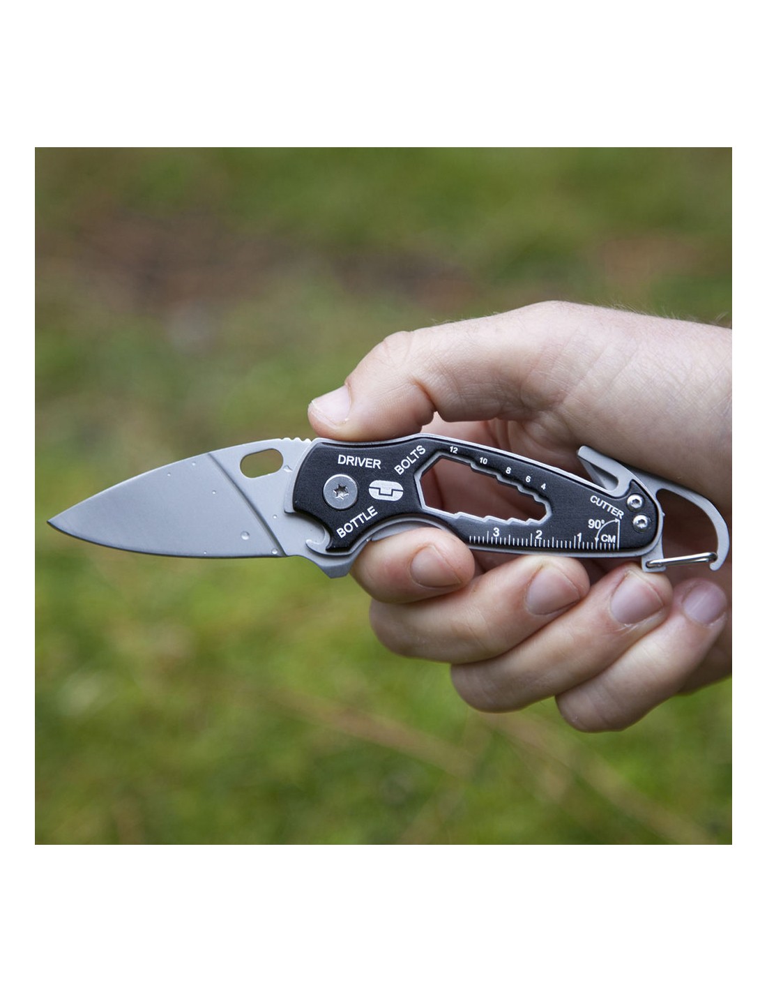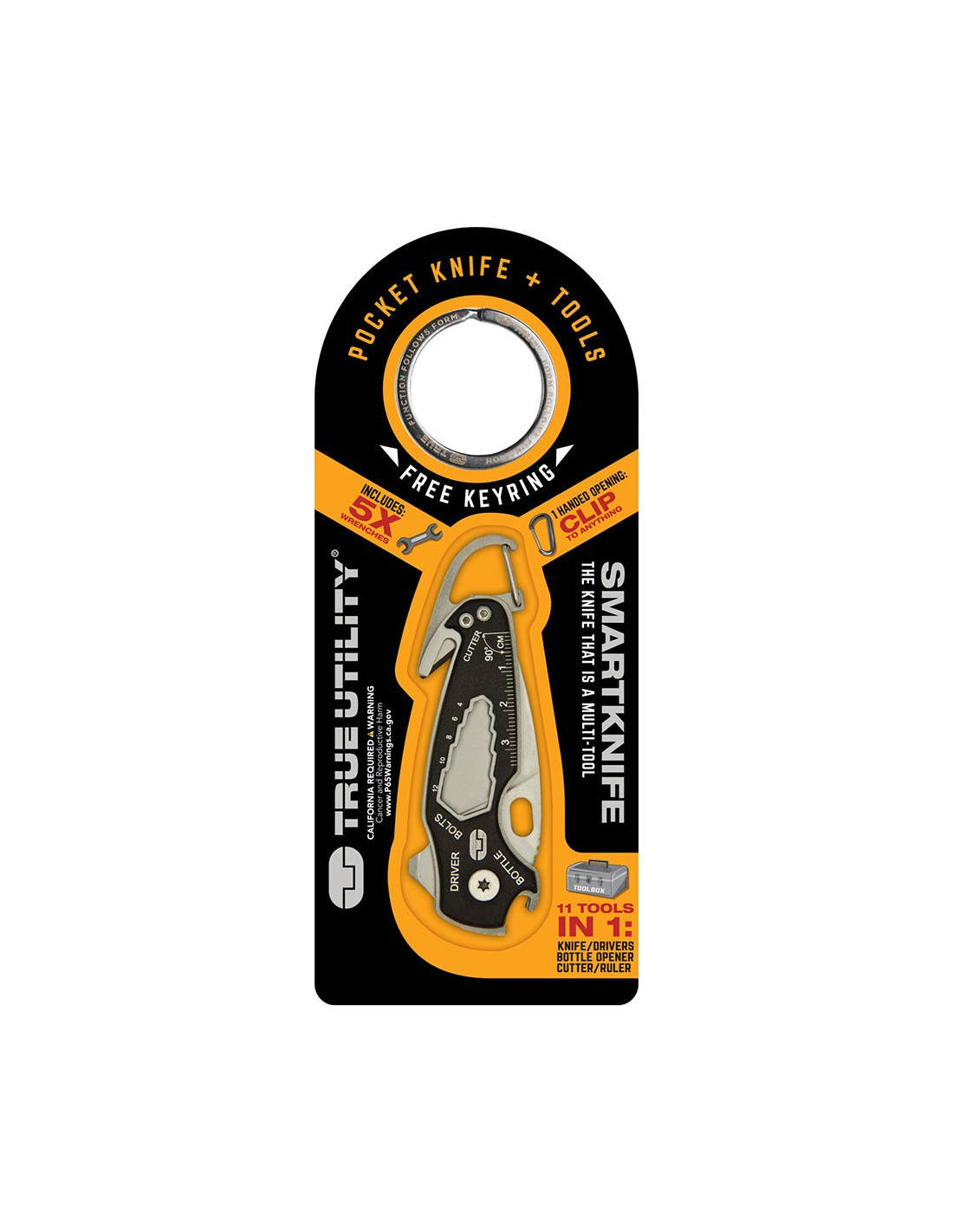 Smartknife navaja con 11 herramientas en 1. con su clip de liberación rápida que también funciona como un abridor de botellas. el destornillador plano grande ayuda a abrir la cuchilla con una mano. con una variedad de llaves útiles, y su cuter incorporado, esta herramienta seguramente será su compañero más útil.smartknife está fabricado con acero inoxidable de grado 420 con manijas de aluminio anodizado y, como siempre, los productos true utility se suministran en un estuche resistente a la intemperie reutilizable.