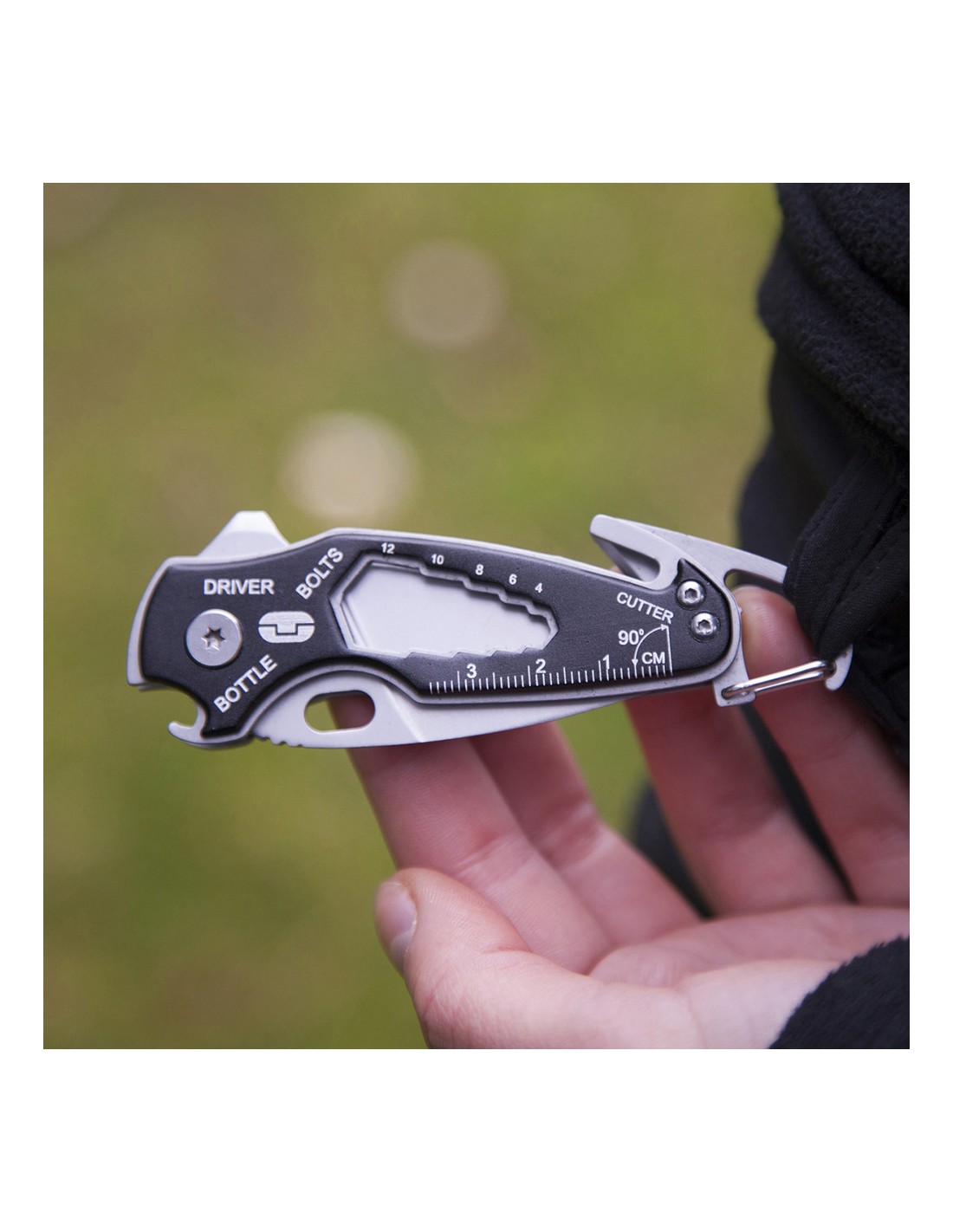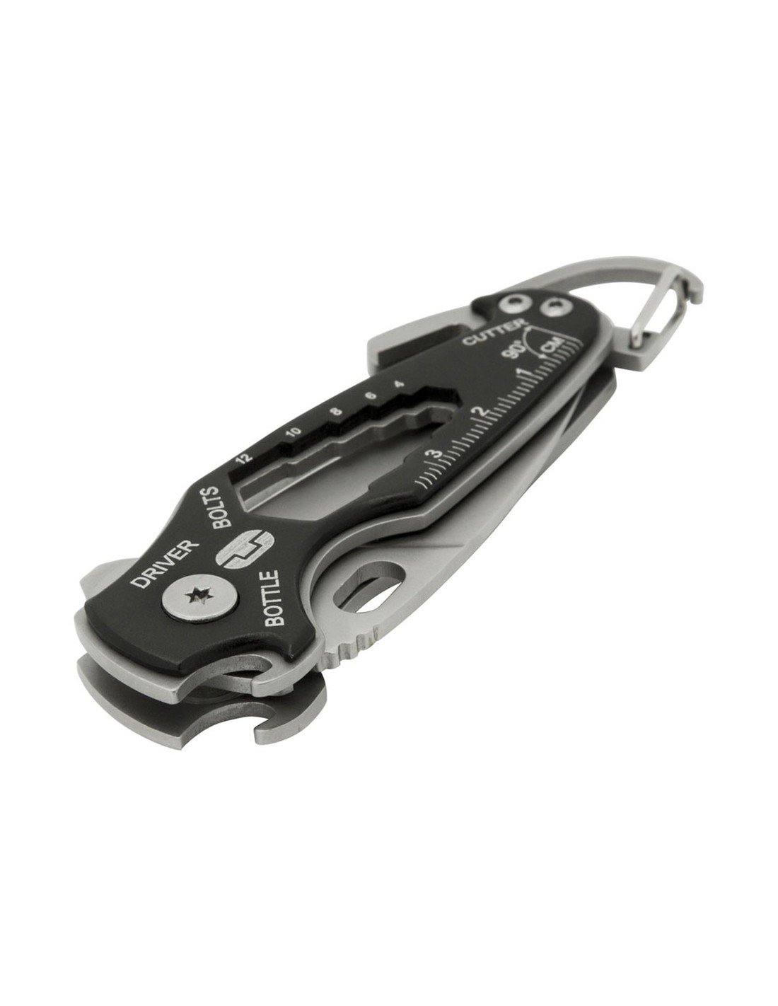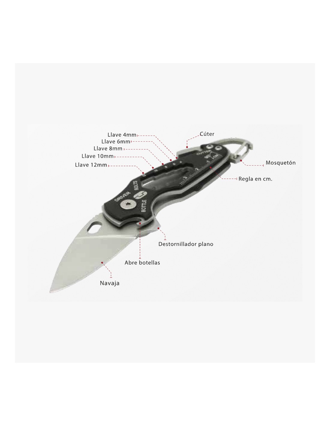 Smartknife navaja con 11 herramientas en 1. con su clip de liberación rápida que también funciona como un abridor de botellas. el destornillador plano grande ayuda a abrir la cuchilla con una mano. con una variedad de llaves útiles, y su cuter incorporado, esta herramienta seguramente será su compañero más útil.smartknife está fabricado con acero inoxidable de grado 420 con manijas de aluminio anodizado y, como siempre, los productos true utility se suministran en un estuche resistente a la intemperie reutilizable.