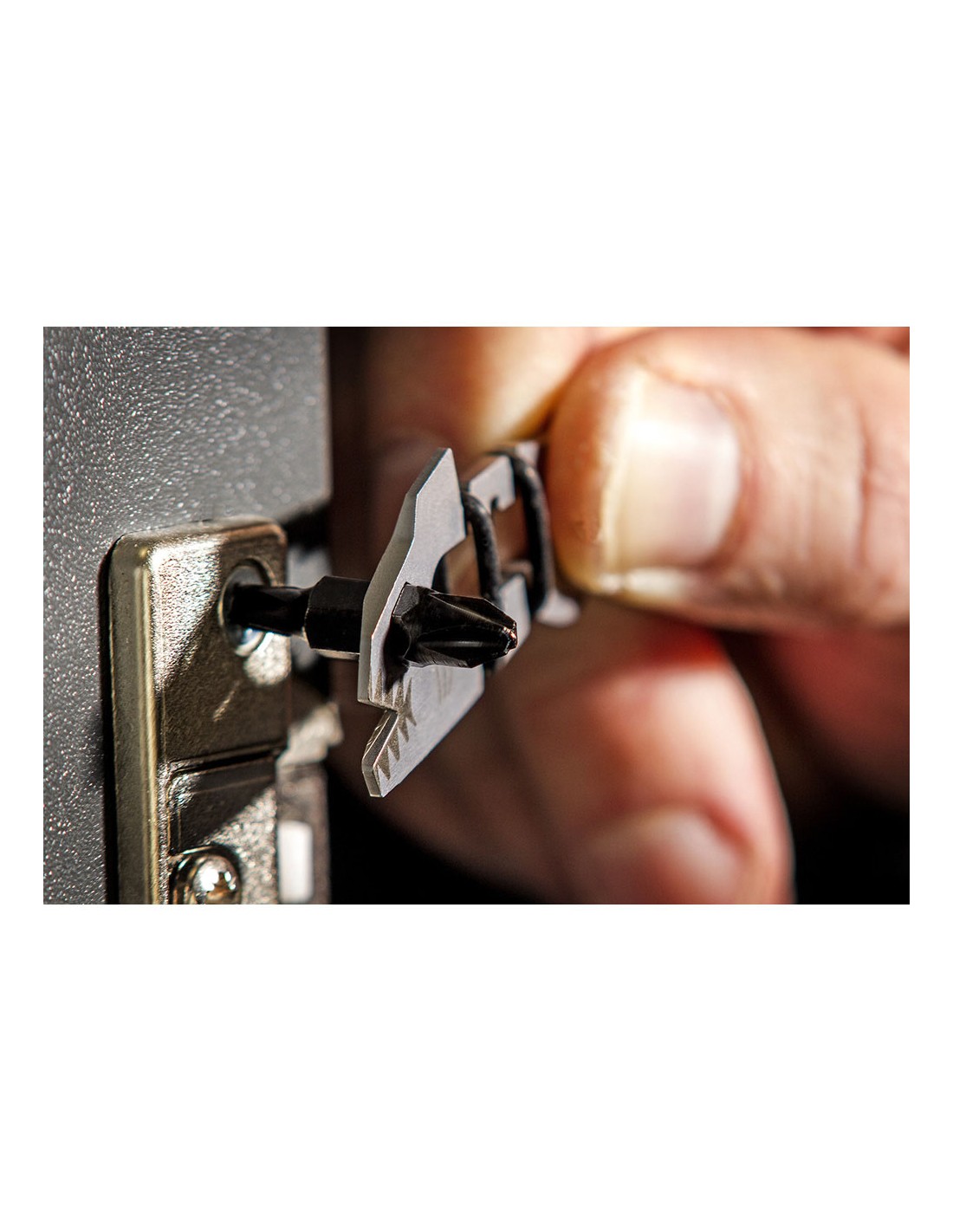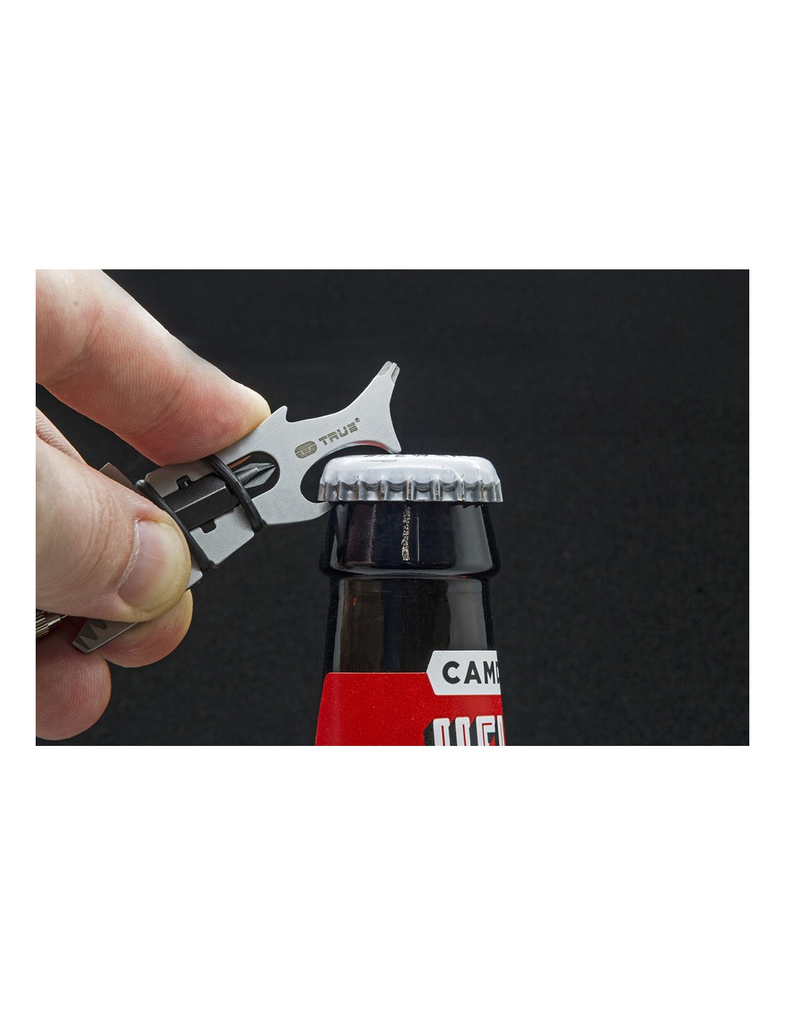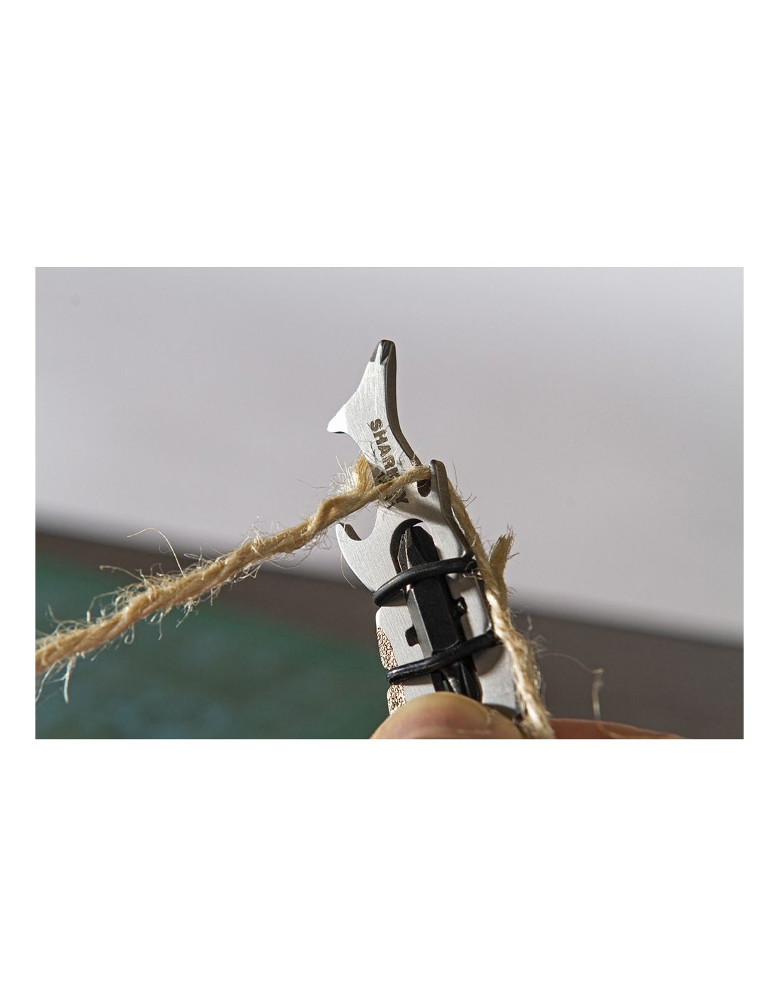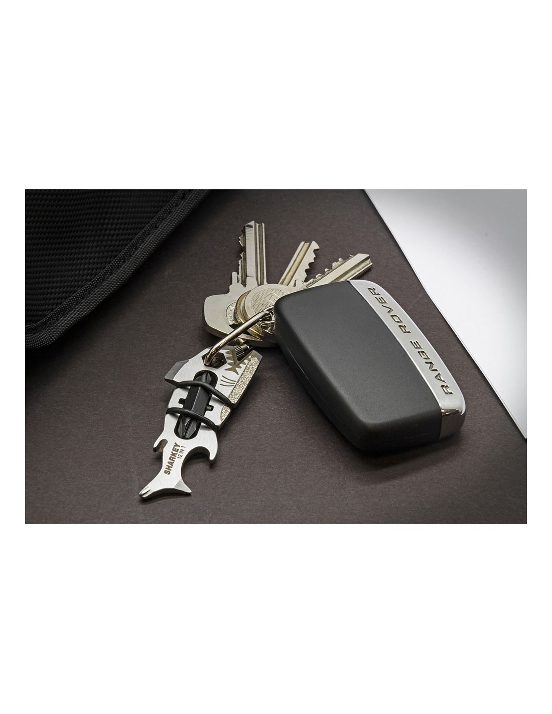 Multiherramienta sharkey 12 en 1 es tiene un tamaño de una llave que viene con una mordida. contiene 6 destornilladores planos pequeños, medianos y grande. también es una barra de palanca y abrebotellas y abrelatas, cortahilos y lima funciona también como un cortador de cajas