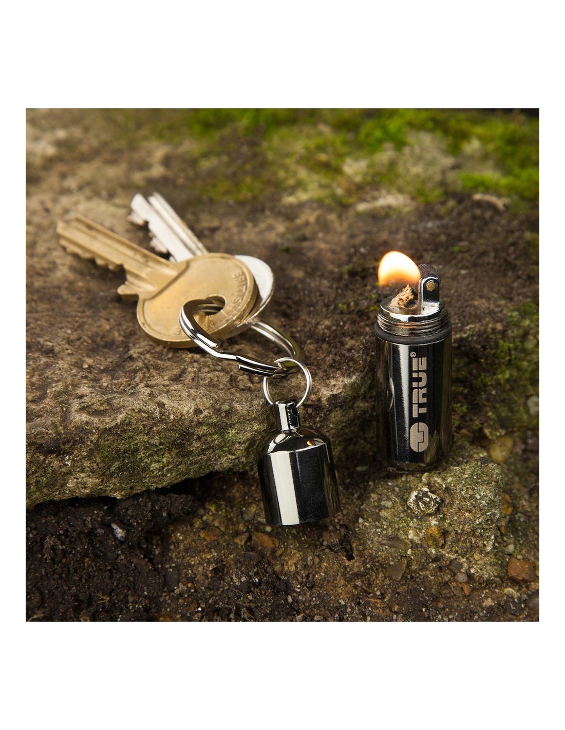 Fire stash llavero mechero, para el encendido de fuegos, encerrado en un recipiente a prueba de agua, el diseño elegante y seguro lo convierte en el compañero ideal para campistas y exploradores. conéctelo a su llavero para su conveniencia. con un cuerpo de aleación de zinc cromado oscuro, compacto, resistente y sólido. tiene un encendedor que funciona incluso bajo la lluvia torrencial. rellene el encendedor como un encendedor estándar para uso repetido. contiene un estuche rígido resistente a la intemperie, ideal para guardar sus objetos de valor