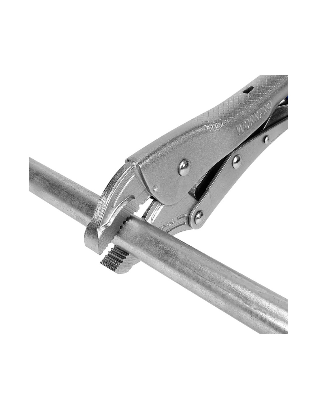 Alicate de presion 180 mm (7"). acero cromo molibdeno para máxima durabilidad. acción de bloqueo y liberación rápida y sencilla. la liberación protegida ayuda a mantener el trabajo rápido y seguro. gire el tornillo para ajustar la presión de sujeción