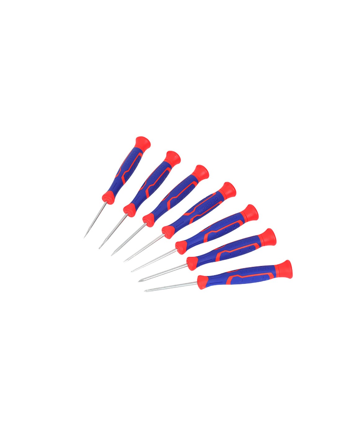 Destornilladores de precisión, 7 piezas 3 phillips + 4 plano. tamaño: ph000 x 50 mm, ph00 x 50 mm, ph0 x 50 mm sl1. 5 -2. - 2. 5 - 3 x 50 mm. cuerpo de cromo-vanadio. punta magnética. mango ergonomico de agarre cómodo, hecho de material plástico con tacto suave y efecto antideslizante