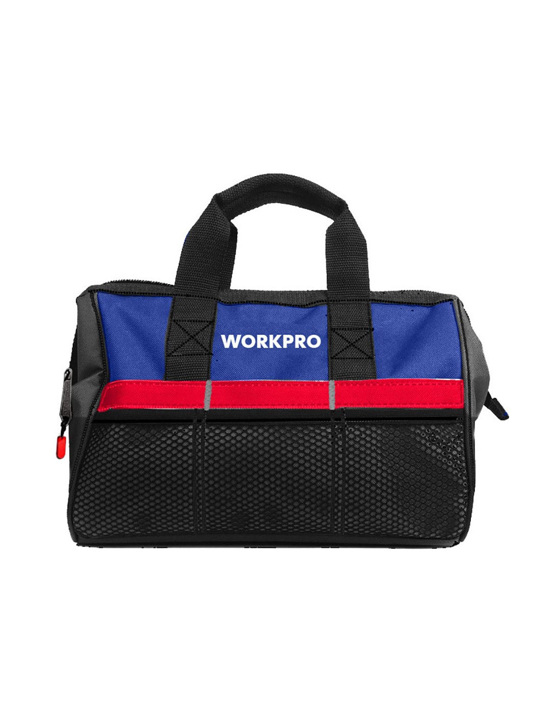 Bolsa de herramientas, ideal para transportar herramientas manuales y otros artículos pequeños y medianos. con cremallera superior para facilitar el acceso de las herramientas. bolsillo exterior de malla para guardar objetos personales, herramientas pequeñas y accesorios. 32 x 21 x 23 cm