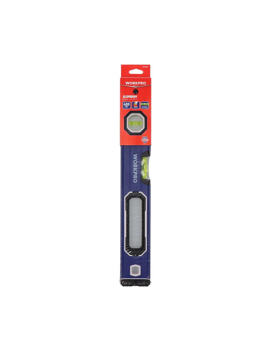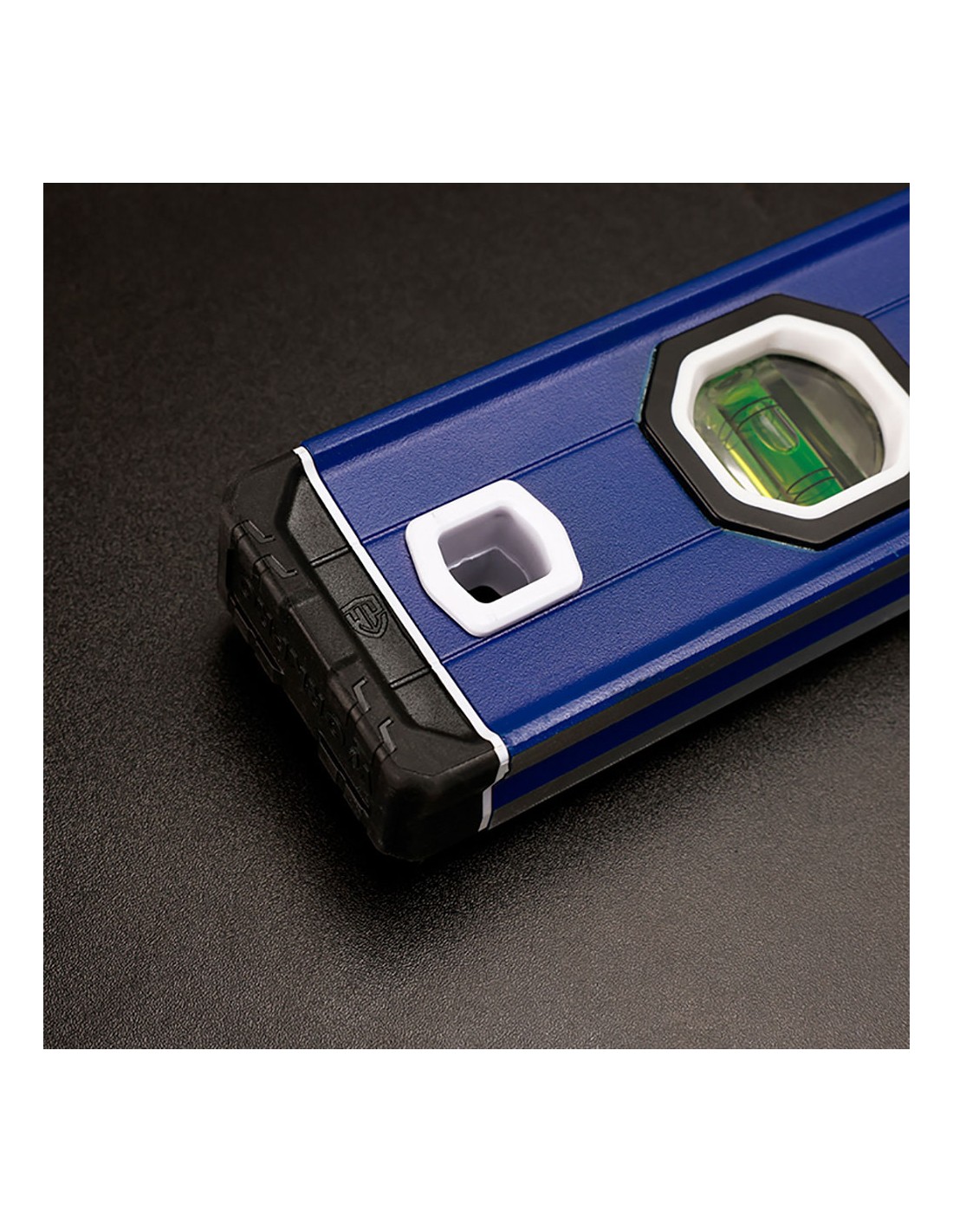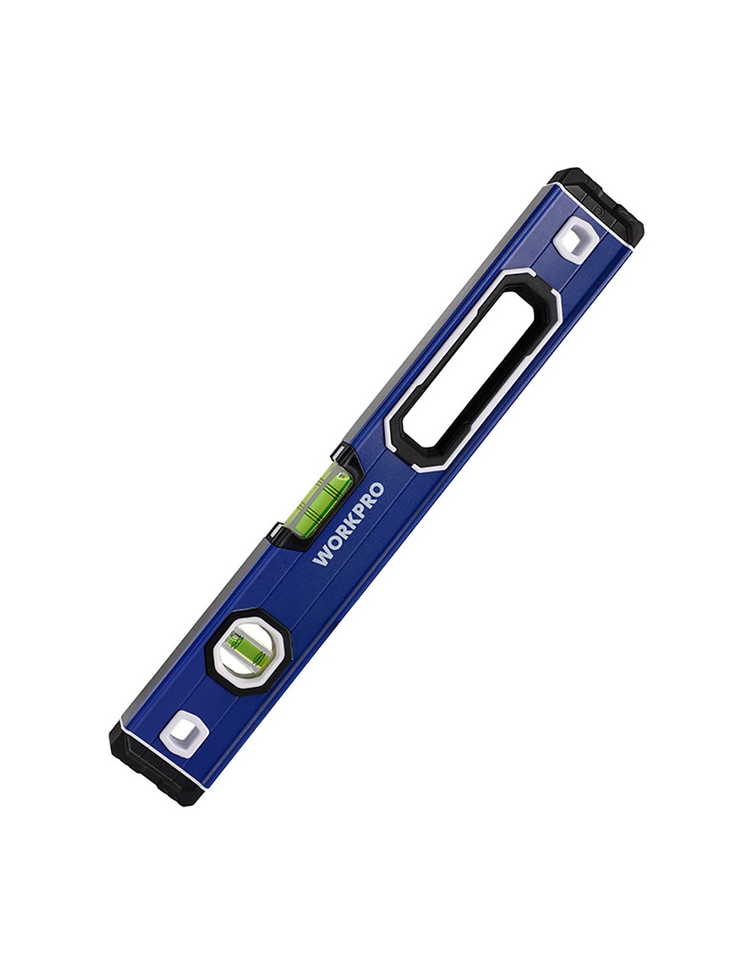 Nivel de burbuja con base mágnetica 40 cm pro. contera a prueba de golpes. anillo de agarre grande, cómodo de usar. aleación de aluminio con tratamiento de oxidación duradero. precisión: 0,5 mm/1 m, 2 viales (/90°/180°). la ranura en forma de v es adecuada para superficies redondas y de tuberías. con agujero para colgar. azul