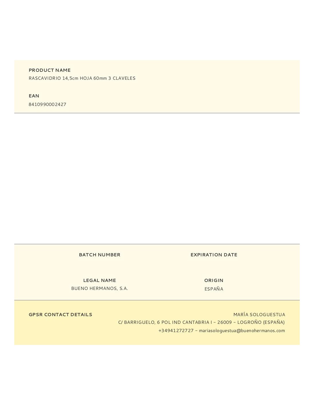 Rascador de vidrios 14,5 cm hoja 60 mm. presentado en display colgador