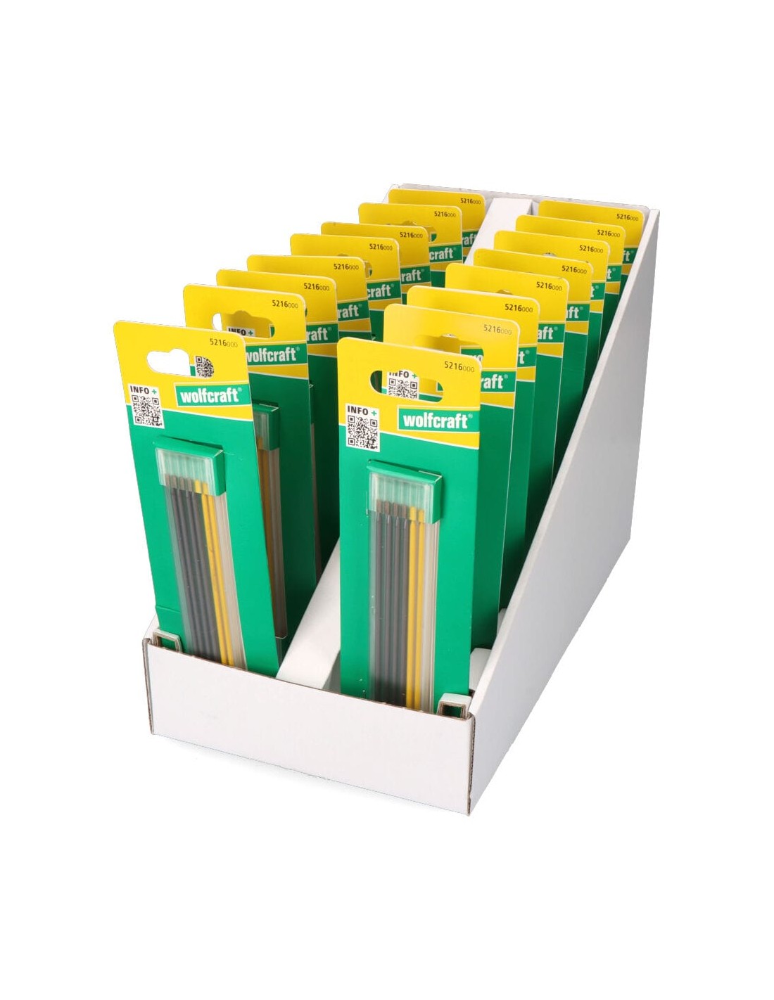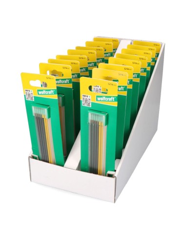 Con las seis minas de repuesto, estará equipado para un uso sostenible a largo plazo de los marcadores de agujeros profundos (p. ej., n. ref. wolfcraft 5215000). tienen un diámetro de ø 2,8 mm y una longitud de 120 mm. el paquete contiene cuatro minas universales grises para realizar marcas bien visibles en superficies claras así como dos minas universales amarillas para superficies oscuras. al finalizar, pueden eliminar fácilmente las marcas con un paño húmedo o una goma de borrar. en el estuche de protección transparente, puede transportar las minas protegidas contra la rotura y conservarlas de forma ordenada.