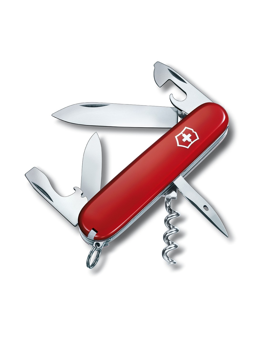 Navaja spartan roja de bolsillo, cuenta con 12 funciones: hoja grande, pequeña, anilla, punzón, destapador, abrelatas, sacacorchos, destornillador 3 y 6mm, pelacables, palillo y pinzas. acero inox. medida 26x14x91mm, peso 59g