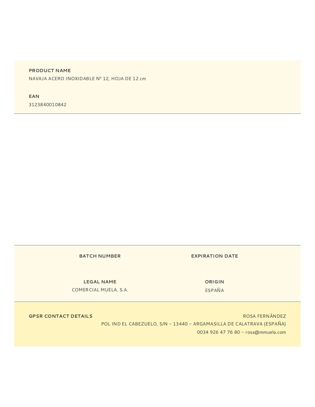 Navaja acero inoxidable n 12, mango de haya y barniz transparente, hoja de 12 cm