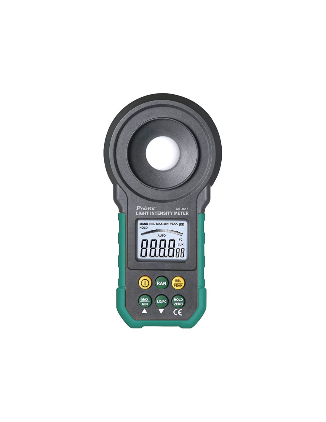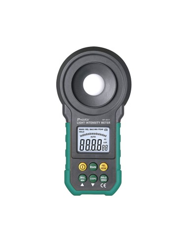 Medidor de intensidad de luz o fotómetro digital de gran precisión. ideal para fotógrafos, interioristas, escenógrafos, etc. para los que la precisión en la luz es esencial. especificaciones: función de autorango, retención de datos, medición de valores máximos y relativos, función de calibrado, pantalla lcd con indicador estilo analógico, conversión de unidades de medida, función de autoapagado e indicador de batería baja, indicador de medición fuera de rango, apto para medidas de luz led de colores y ajuste de la selección de color y parámetros de la fuente de luz a medir. alimentación: 1 pila de 9v 6lr61 (no incluida). aplicación: luxómetro para luz led y estándar. dígitos: 3 y 1/2 dígitos. escala: 20-200k lux, 20-20k fc (foto candelas). nota: 1 fc 10,764 lux, 1 lux 0,09290 fc (foto candela). ref. fabricante: mt-4617led. resolución: 0,00 - 200000 lux. tamaño: 85 x 45 x 170 mm
