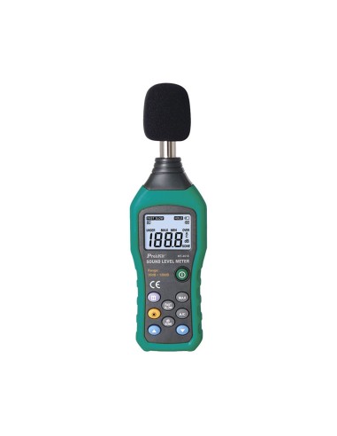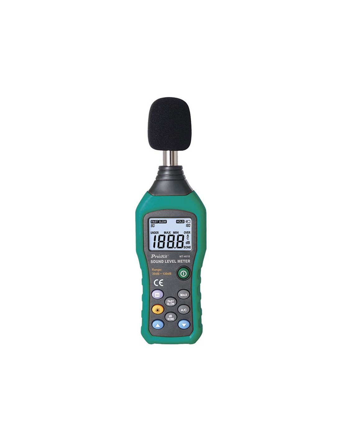 Especificaciones: rango 30 - 130db, pantalla lcd retroiluminada (4 digitos), ratio de respuesta seleccionable (alta o baja velocidad), mantenimiento de valores máximos y mínimos, funcionalidad de autorango, buen rendimiento anti-interferencias, apagado automático, presión dinámica de sonido de 50db (por rango) rapido 125ms, lento 1s, rangos de trabajo: 30-130dba, 35-130dbc, 30-80db, 40-90db, 50-100db, 60-110db, 70-120db, 80-130db, 30-130db es autorango.alimentación: pilas 4xaaa (no incluidas). escala: 6 niveles, 60-80db, 40-90db....70-120db, 80-130db. frecuencia: respuesta 30hz-8khz. nota: rango 20db - 130db. resolución: 1db. tamaño: 193 x 60 x 29 mm