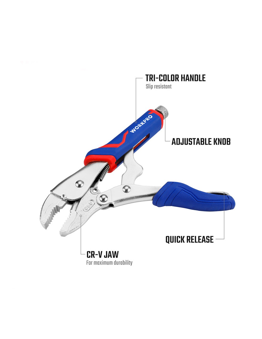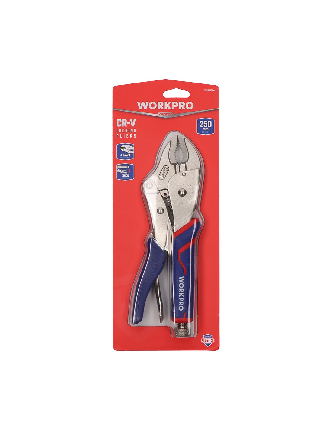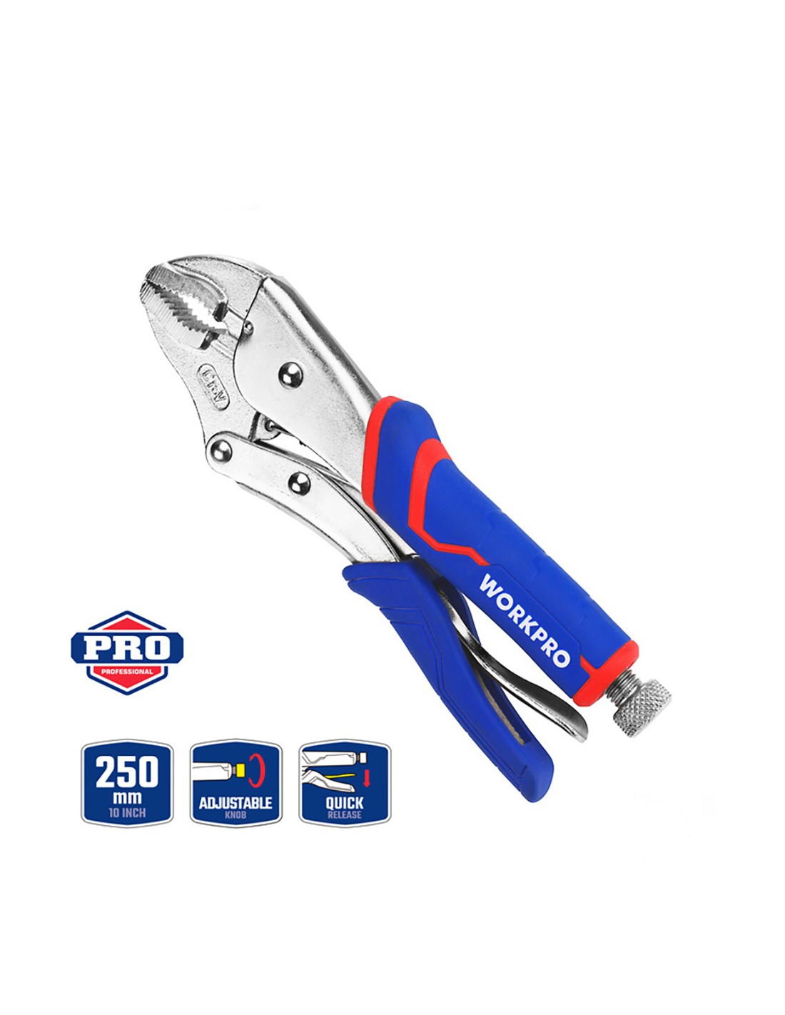 Mordazas de presión 250 mm (10") . acero cromo molibdeno para máxima durabilidad. acción de bloqueo y liberación rápida y sencilla. la liberación protegida ayuda a mantener el trabajo rápido y seguro. gire el tornillo para ajustar la presión de sujeción. mango de agarre cómodo de tres materiales