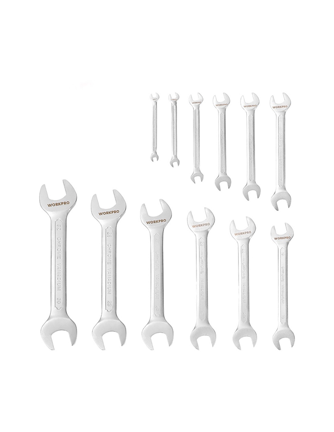 Juego de 12 llaves fijas . acero al cromo-vanadio, cromadas. tratadas térmicamente y templadas para cumplir o superar las normas ansi en cuanto a resistencia y duración., acabado mate. tamaño: 6 - 7 mm, 8 - 9 mm,10 - 11 mm, 12 - 13 mm,14 - 15 mm, 16 -17 mm, 18 - 19 mm, 20 - 22 mm, 21- 23 mm, 24 - 27 mm, 25 - 28 mm, 30 x 32 mm