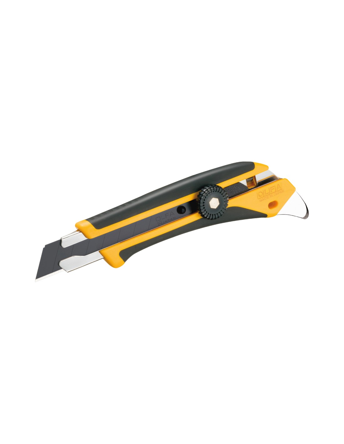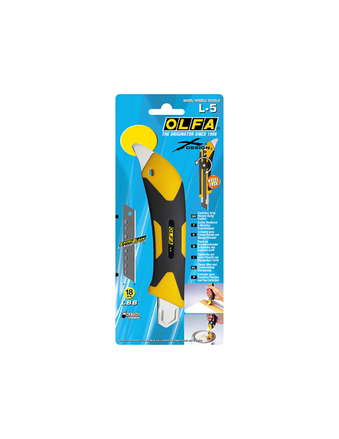 Cútter l-5 muy resistente equipado con cuchilla negra extra afilada lbb. su mango antideslizante comfort grip de dos materiales (elastómero y polipropileno reforzado con fibra de vidrio) permite una gran potencia de corte. resistente al ácido y a la acetona. incorpora una púa de metal duro al final del mango para múltiples usos. con bloqueo de rueda. aplicaciones sugeridas: proyectos de bricolaje, construcción, aplicaciones industriales, etc