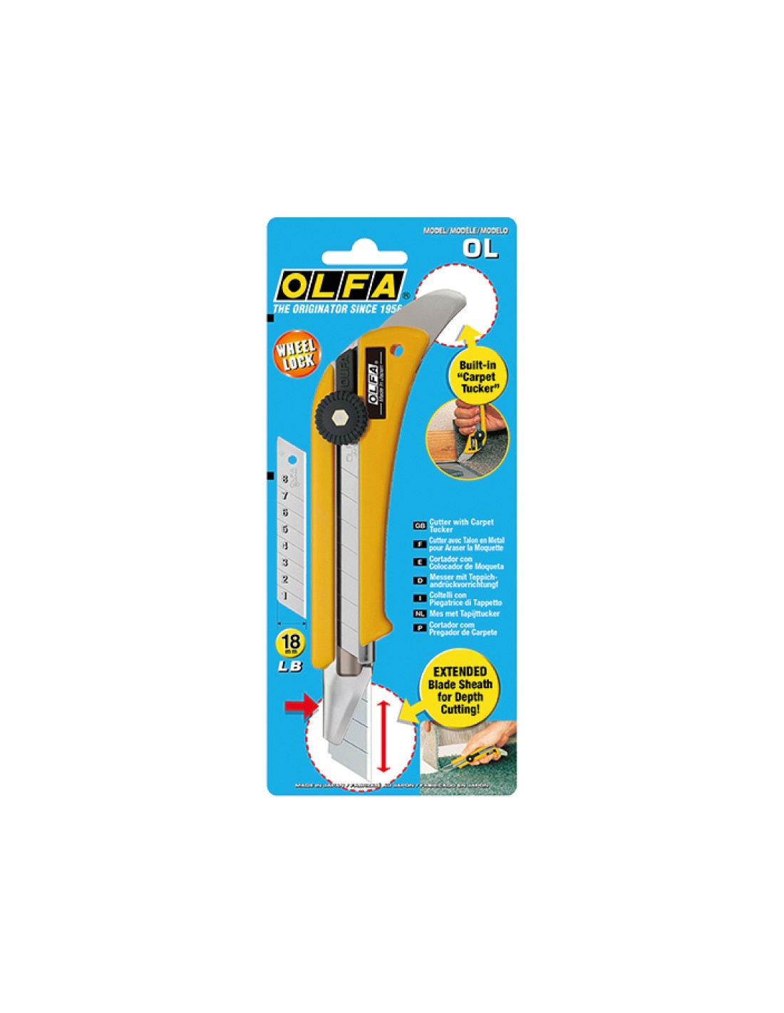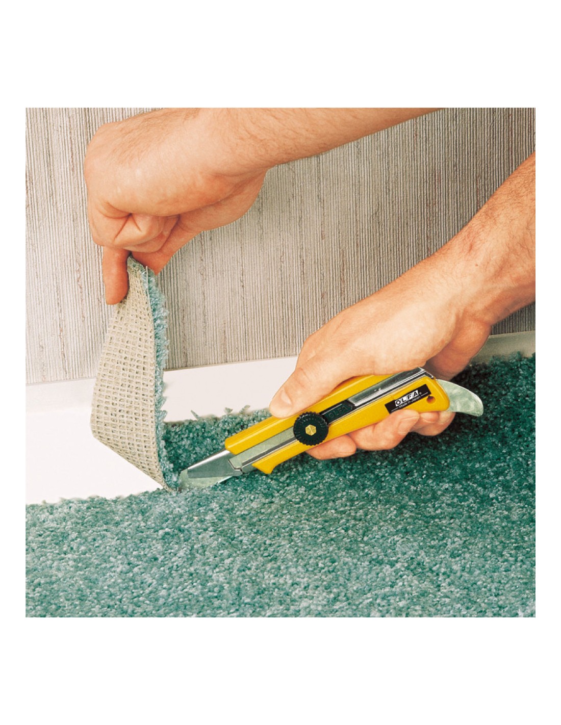 Cútter ol especialmente diseñado para el corte de moquetas con canal extendido para cortar a través de diferentes grosores incorpora colocador de moquetas al final del mango bloqueo de rueda aplicaciones sugeridas: moquetas, linóleo, placa escayola, etc