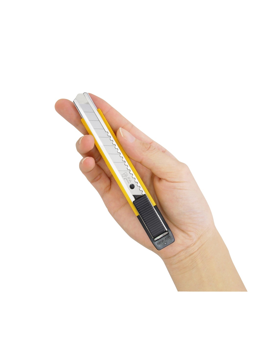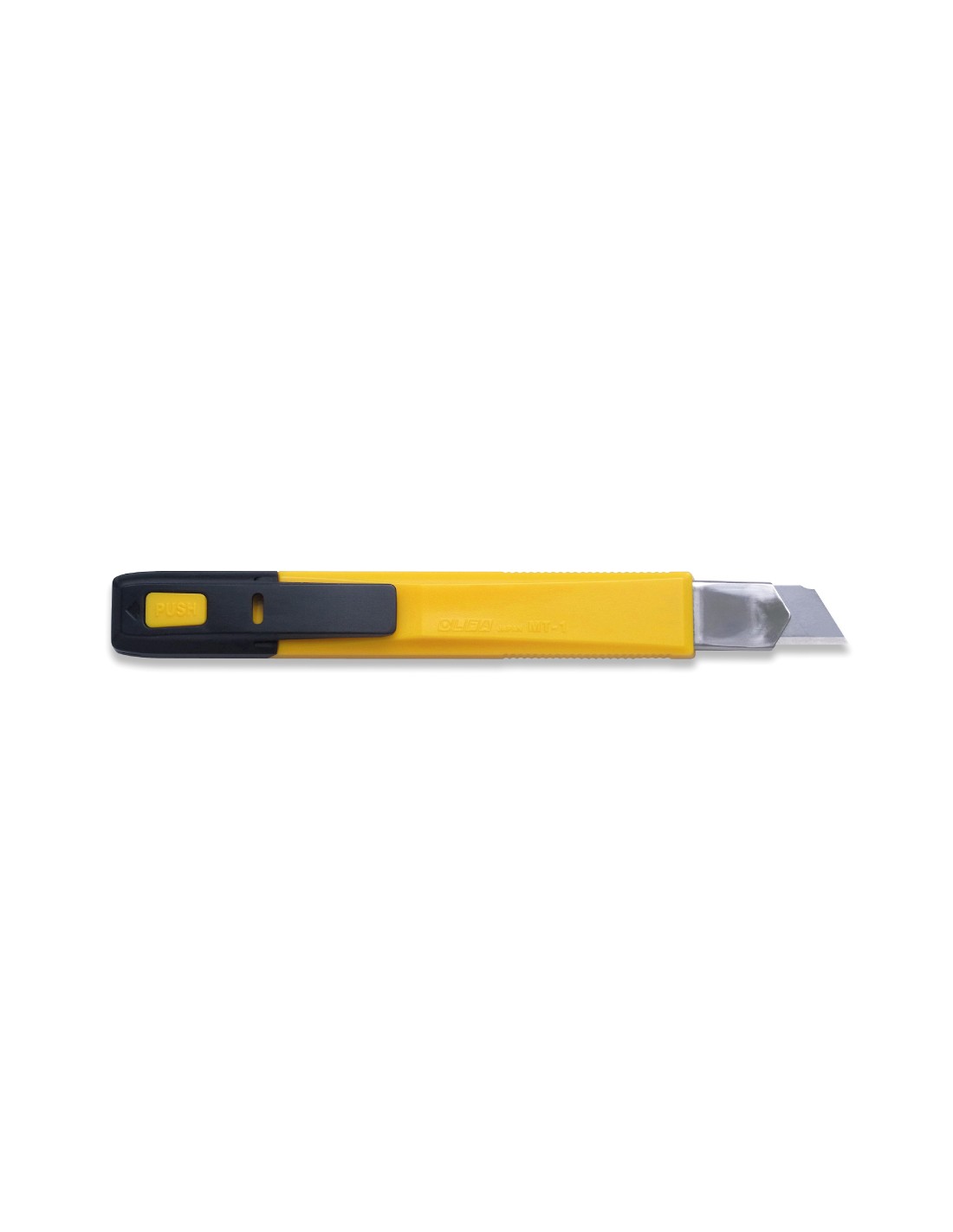 Cúter mt-1 tamaño medio con cuchilla de 12,5 mm. para muchos usuarios considerado como el tamaño ideal. ligero como un cutter de 9 mm pero robusto como uno de 18 mm. ideal para cortar cartón. incluye clip para bolsillos con partidor de cuchillas. el cuerpo principal está hecho 100% de resina reciclada. bloqueo automático mediante gatillo deslizante. aplicaciones sugeridas: corte en general: papel, plástico, cartón, retractilado, etc