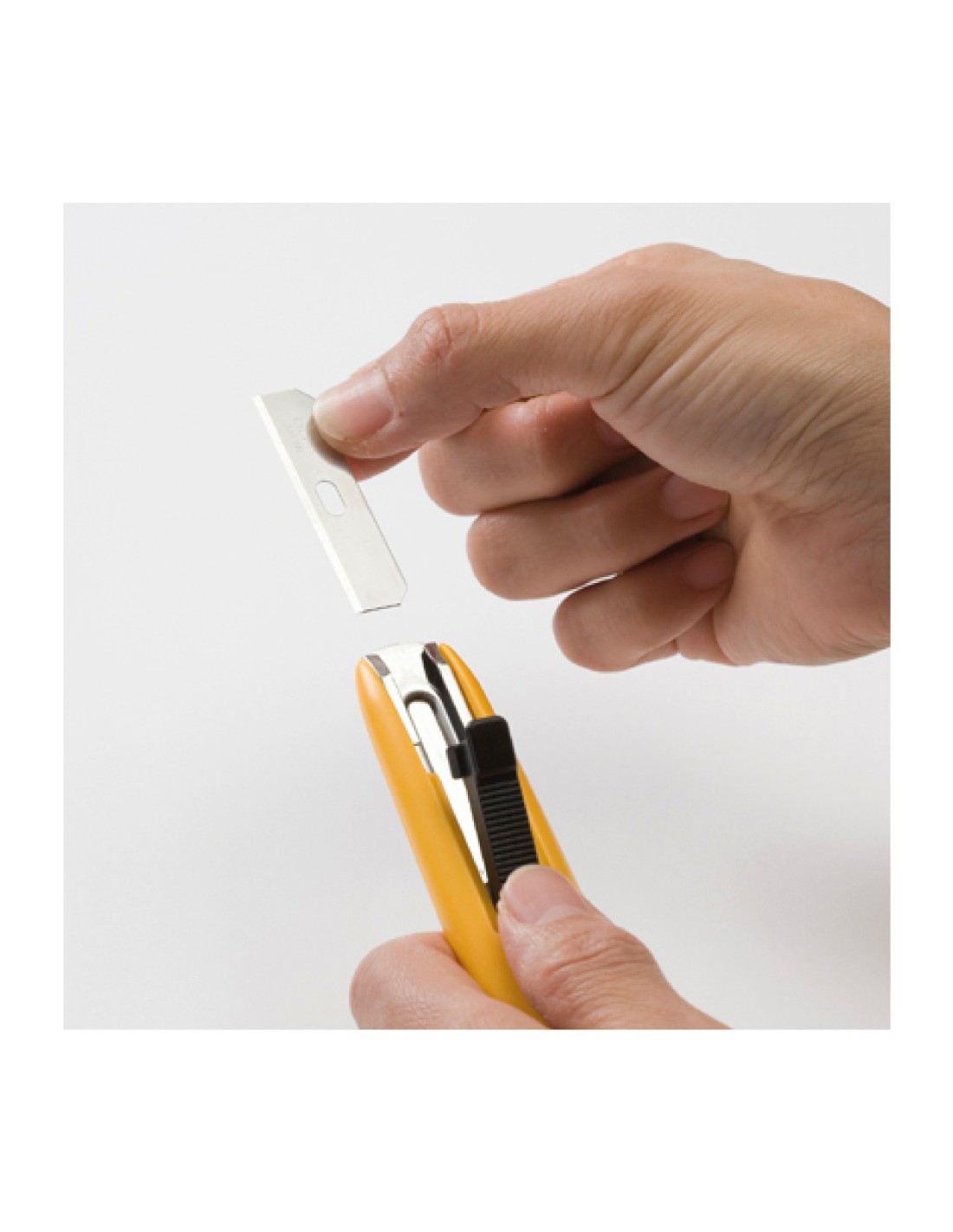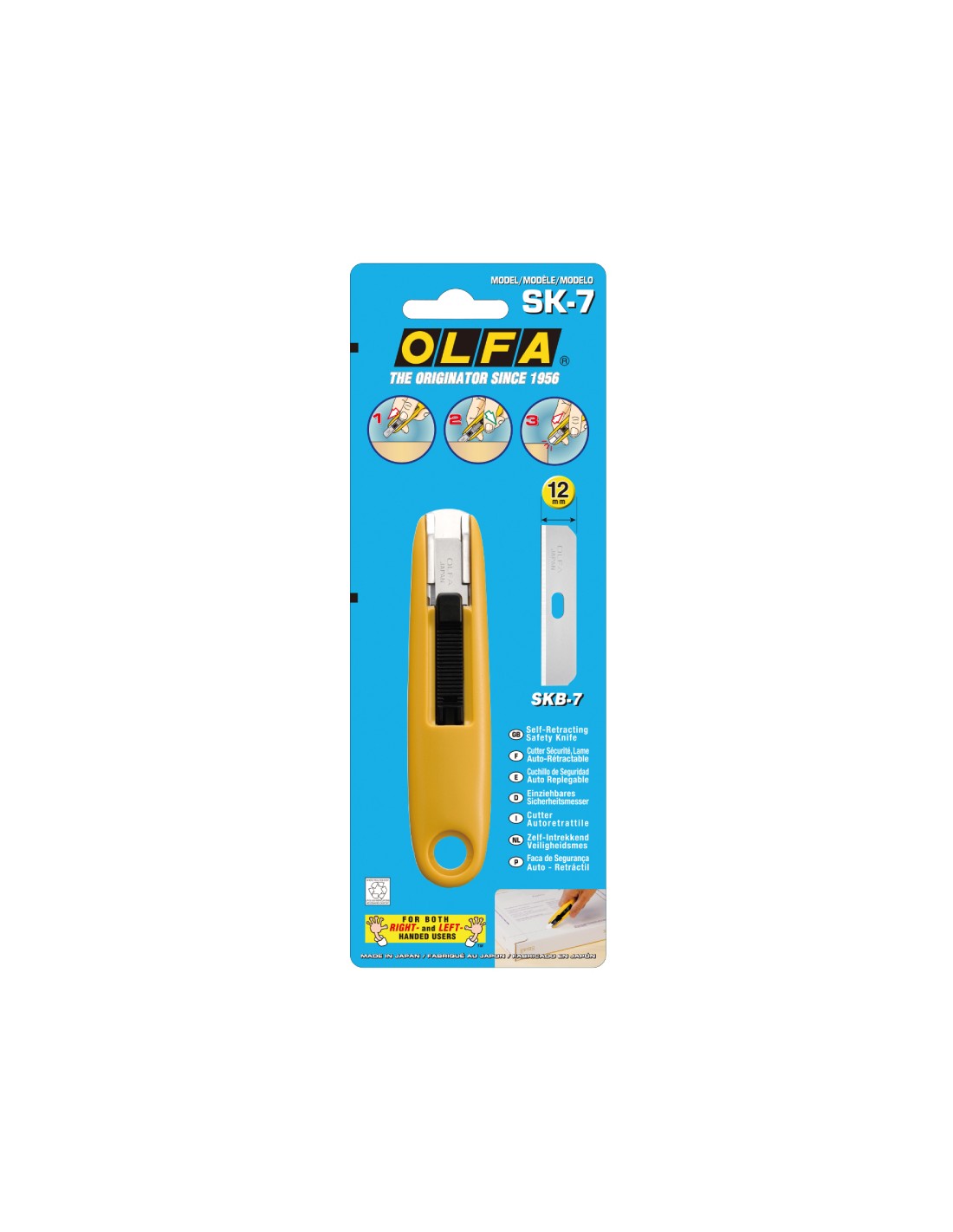 Cúter de seguridad sk-7 con cuchilla de 12 mm de retracción semi automática al soltar el deslizador, la cuchilla se retrae automáticamente después del corte o cuando pierde el contacto con el material a cortar previene lesiones accidentales después del corte potente muelle de retorno canal de la cuchilla robusto de acero inoxidable cuchillas reversibles de doble uso apto para usuarios zurdos: únicamente hay que invertir el sentido de la cuchilla no se requieren herramientas para el reemplazo de la cuchilla medidas: 26 x 115 mm