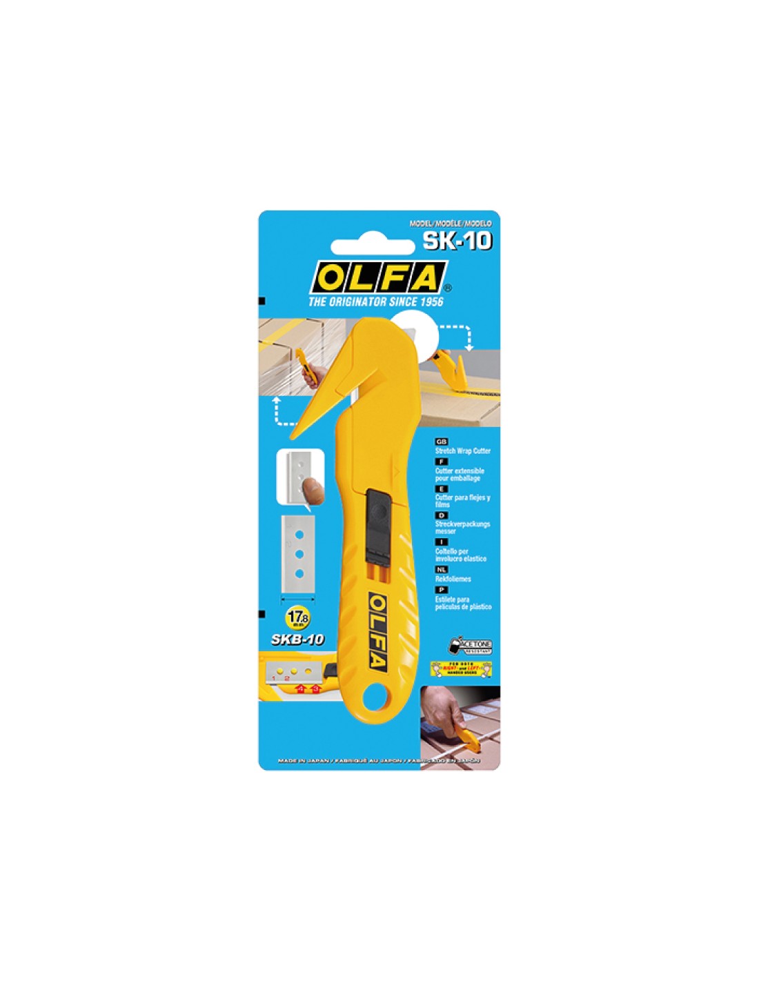 Cútter sk-10 de seguridad con cuchilla oculta rectangular de 17,8 mm y con cortador de precinto incorporado. diseñado para evitar cortes involuntarios. corta de manera segura fleje de nylon y plástico retráctil. el cortador de precinto corta el precinto sin dañar el contenido de la caja. la cuchilla reversible de acero al carbono ofrece 4 puntos de corte. la cuchilla se cambia fácilmente sin necesidad de ninguna herramienta. apto para usuarios zurdos: únicamente hay que invertir el sentido de la cuchilla