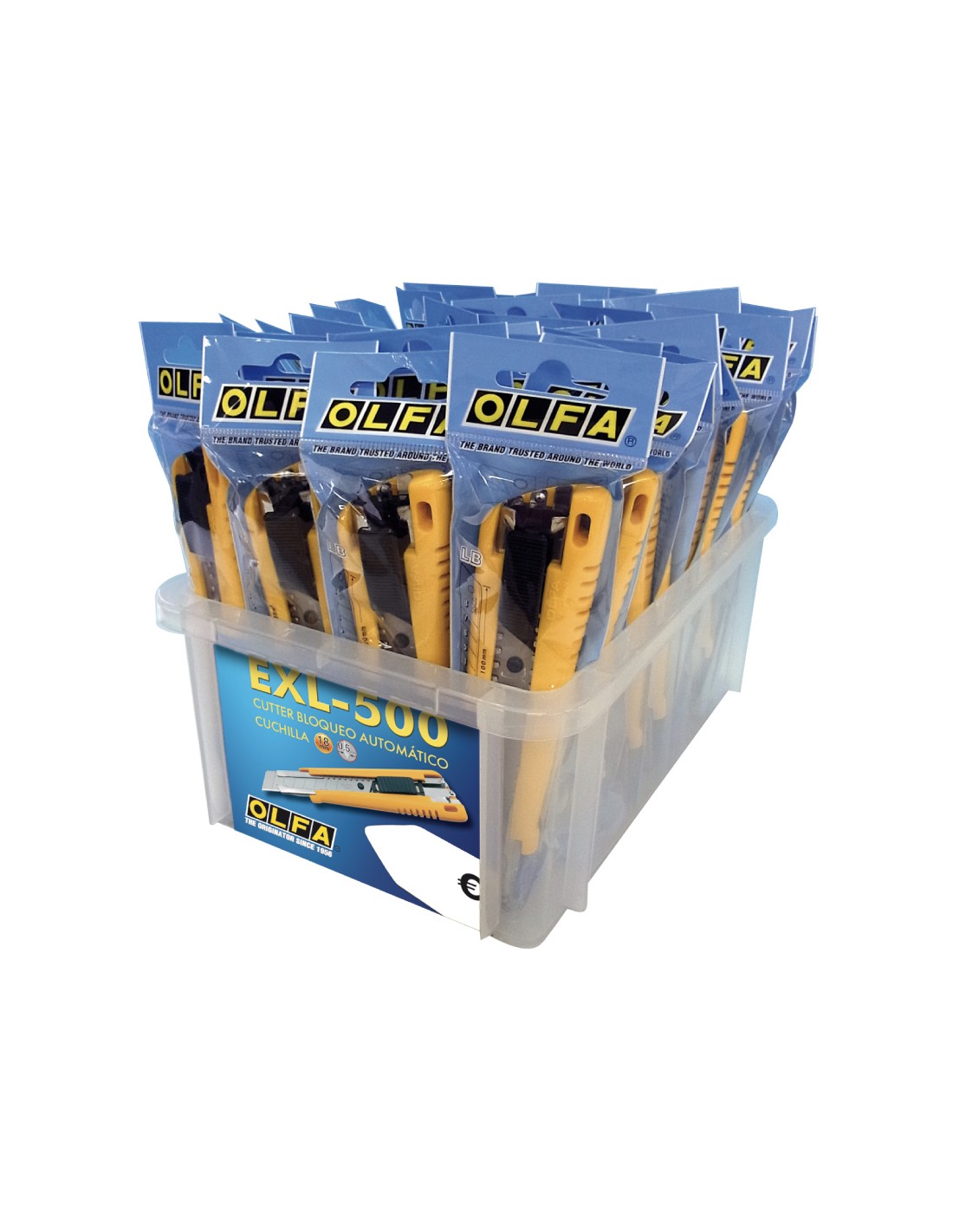 Cúter profesional exl-500 con cuchilla de 18 mm y bloqueo automático. presentado en caja expositores de 40 unidades