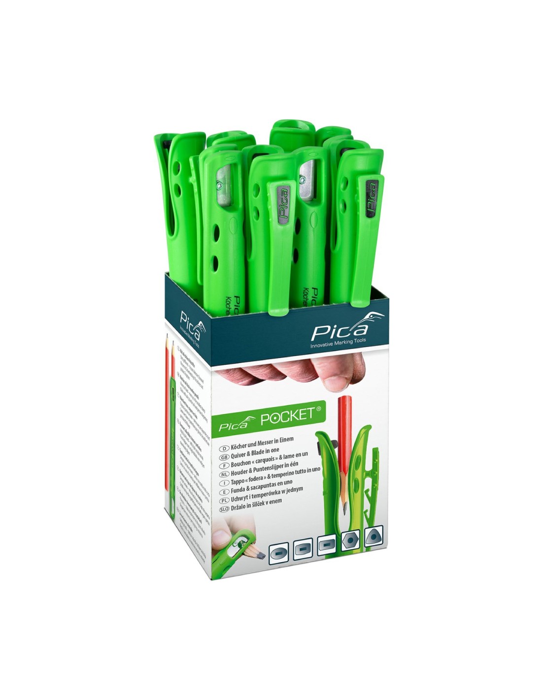 Funda pocket y sacapuntas lápices retiene todo tipo de lápices de madera gruesos, ovales, aplanados, triangulares, hexagonales, de cualquier longitud. su ingeniosa función de sujeción deja al lápiz de madera siempre a mano. integra un sacapuntas de acero al carbono. preciso afilado de la punta mediante un limitador. resistente clip para fijar con seguridad en el bolsillo del pantalón
