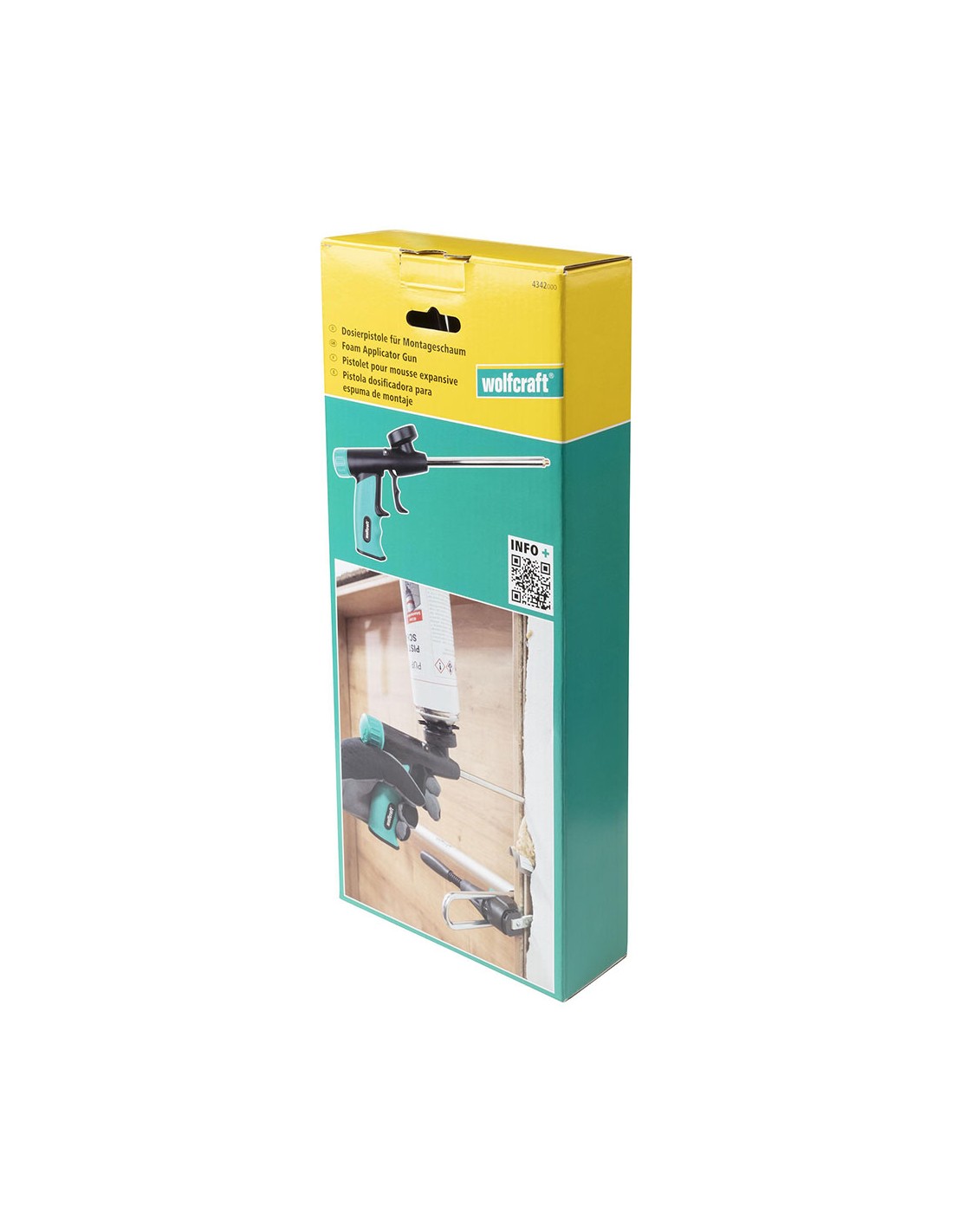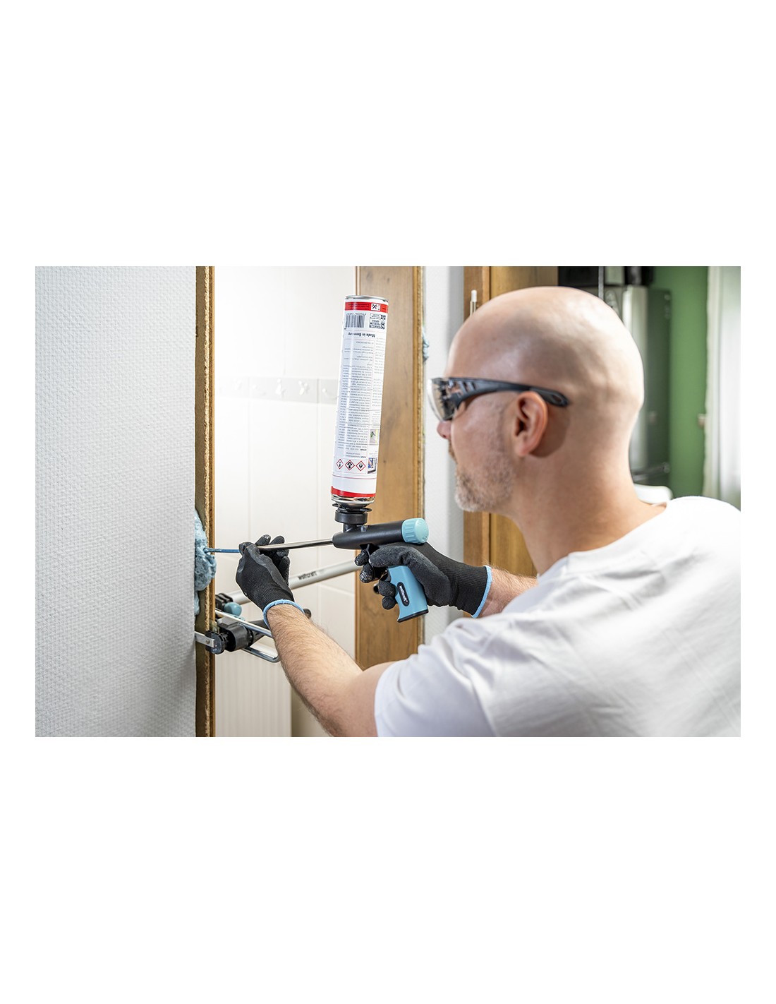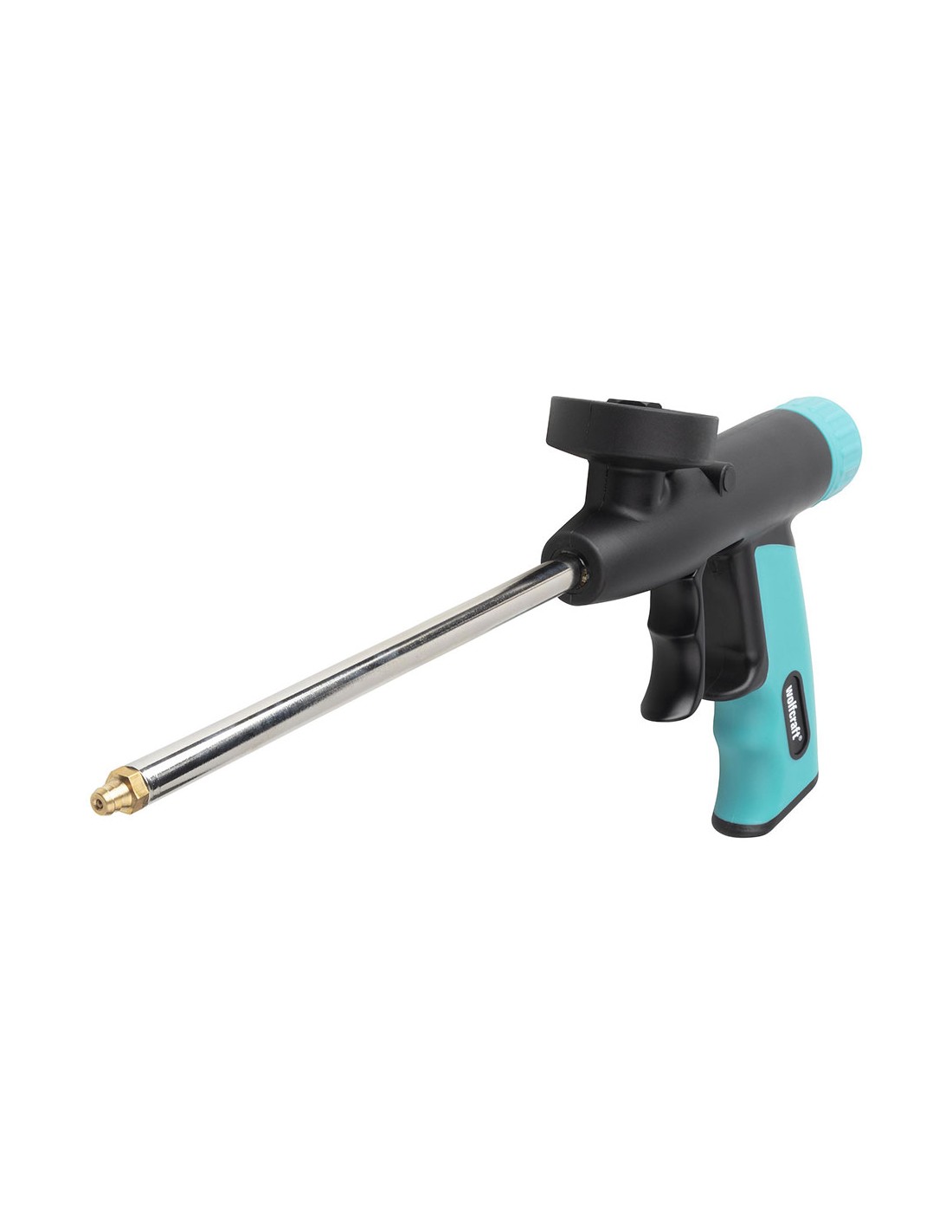 Pistola dosificadora para espuma de montaje. para botes de espuma de poliuretano disponibles en el mercado. versión de alta calidad de metal y plástico. mango ergonómico de 2 componentes, contiene 2 boquillas finas y 2 prolongaciones flexibles