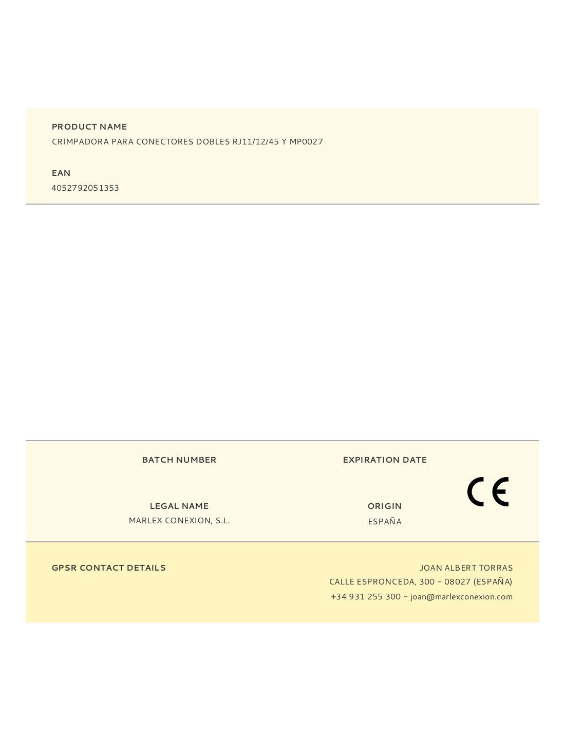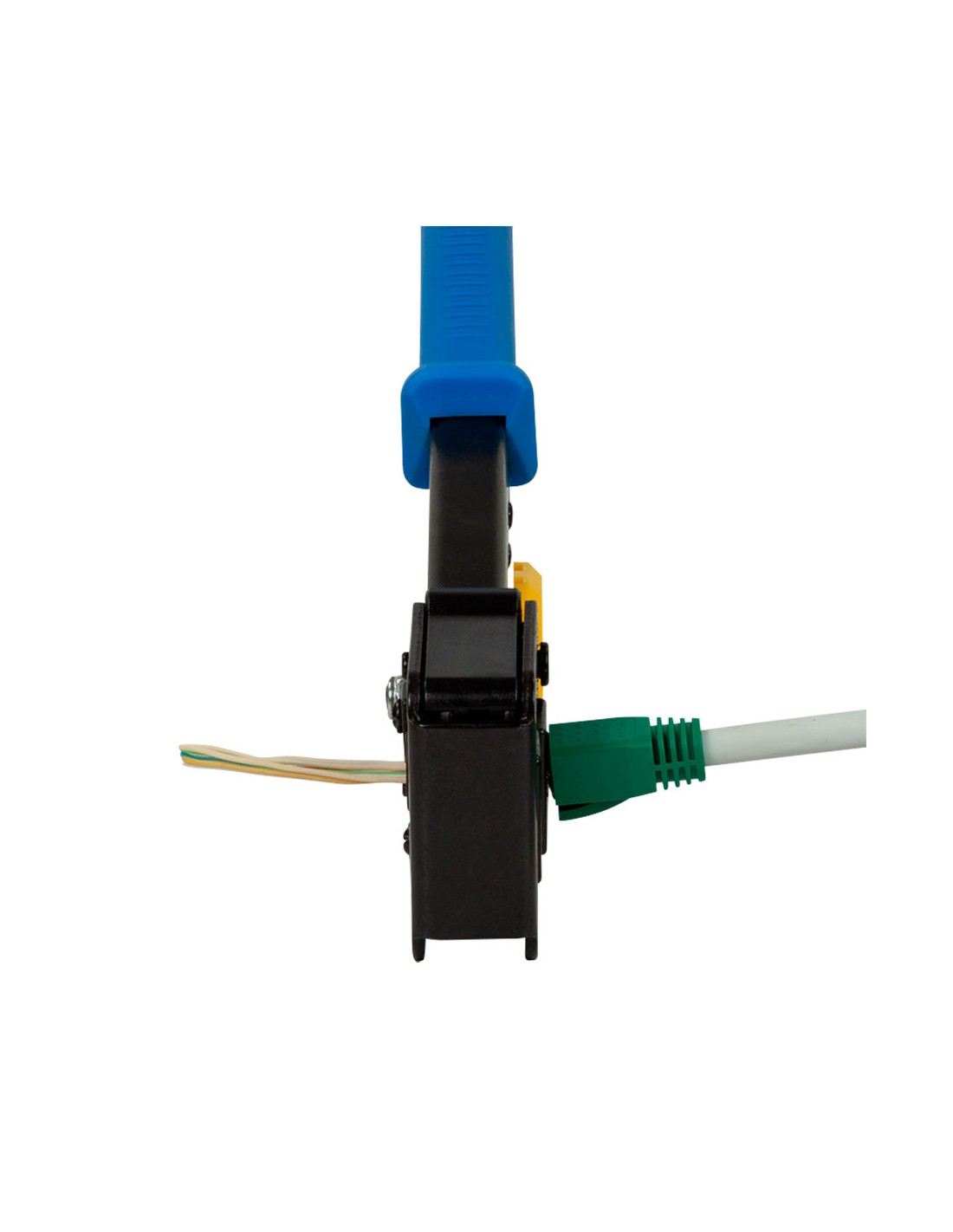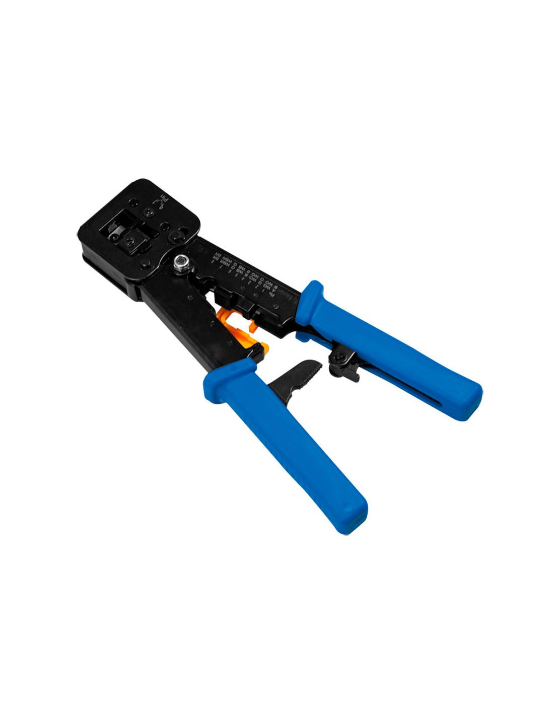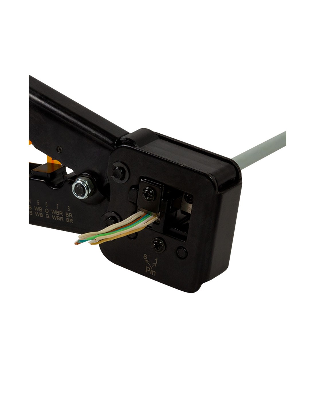 Crimpadora para conectores modulares dobles 8p /6p + ez. crimpea conectores rj-11, rj-12, rj-45 y mp0027 con trinquete para movimiento recto cortador y pelacables integrados marco de acero con empuñadura de goma termina cables cat5e y cat6