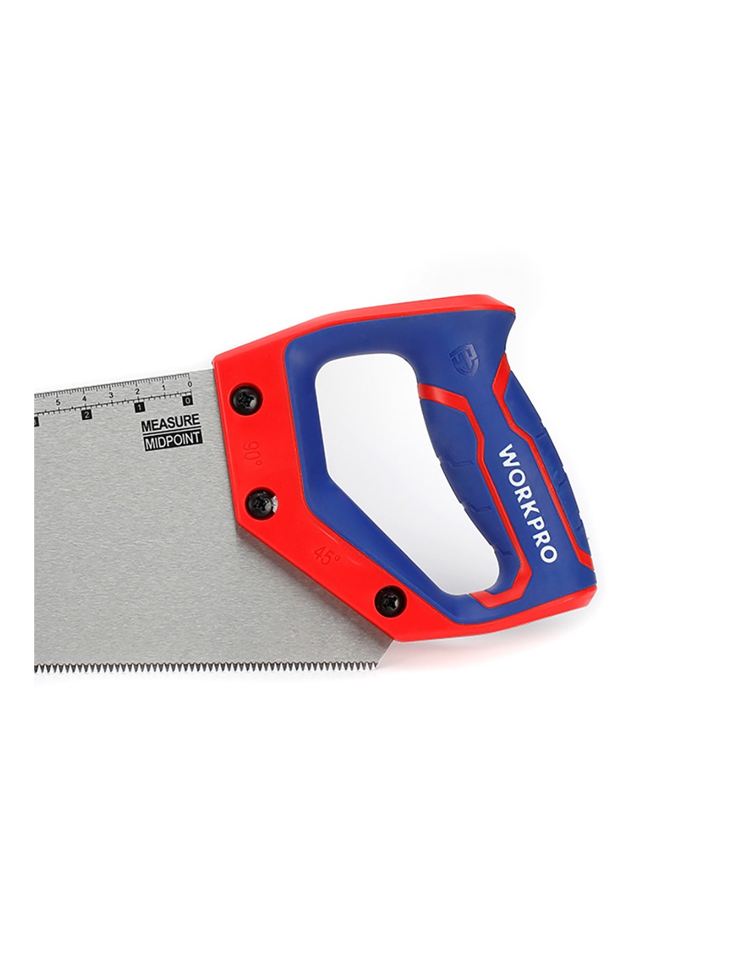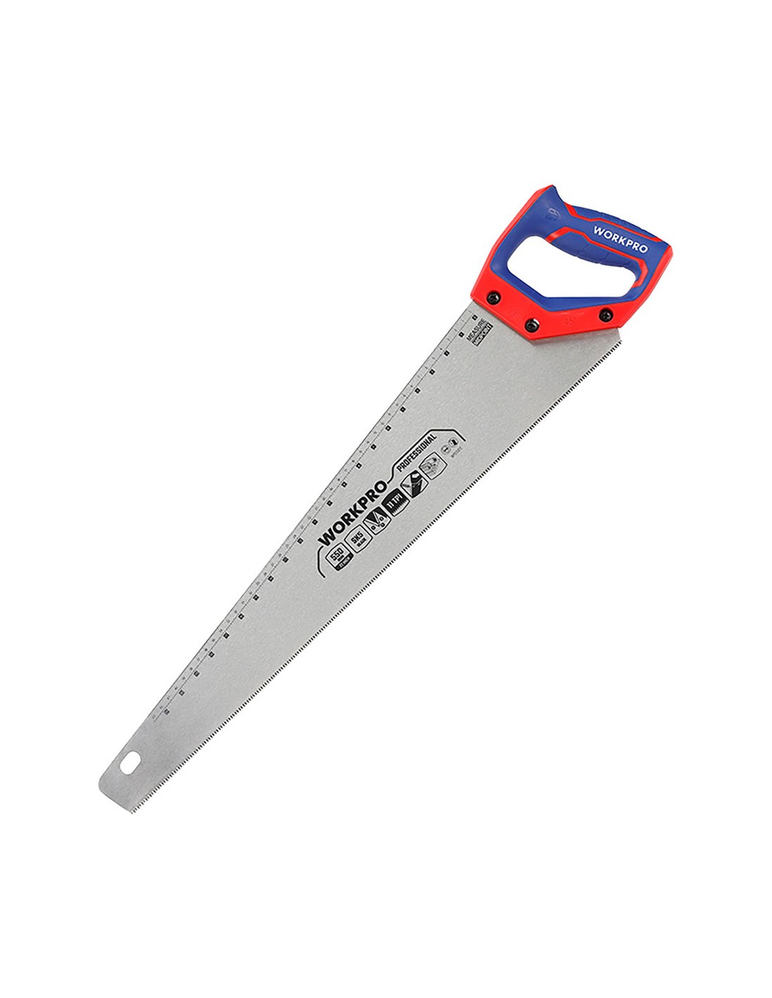Sierra de mano de 550 mm, mango ergonómico con bordes diseñados para ayudarte a trazar ángulos comunes sin necesidad de otra herramienta (90° y 45°), con marca de escala en la hoja de la sierra de sk5, 11 tpi, dientes rectificados triples con diseño grandes y pequeños para una eliminación de virutas más rápida y una mayor eficiencia, adecuado para cortes rápidos de madera, bambú, pvc y otros materiales