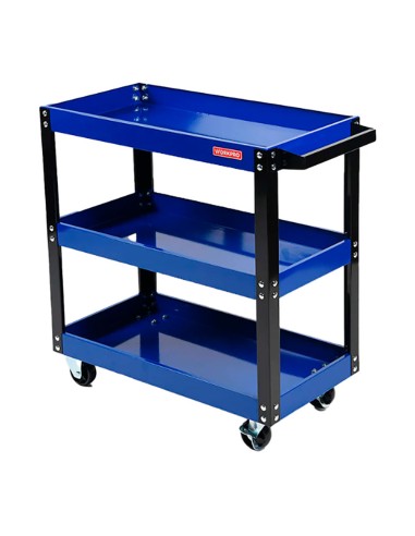 Carro de herramientas con 3 bandejas, estructura completa de metal, robusto y duradero pintado al horno, resistente al uso y a la corrosión, más espacio de almacenamiento, ruedas de pp, sistema de freno capacidad máxima de carga por bandeja: 25 kg color: azul y negro, dimensiones: 75,5 x 35,5 x 70,5 cm