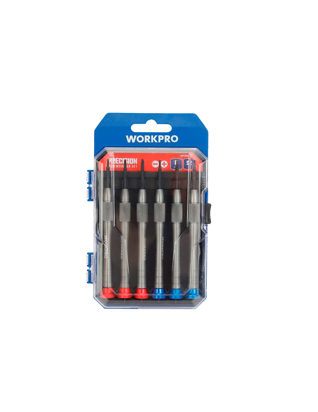Destornilladores aluminio de precisión, juego de 6 piezas mango de aleación de oxido de aluminio antideslizante, hoja s2, punta magnética contiene: 3 planos sl1,5 mm, sl2,0 mm, sl2,5 mm 3 phillips: ph00,ph0,ph1 1 caja de plástico transparente, fácil de guardar y transportar