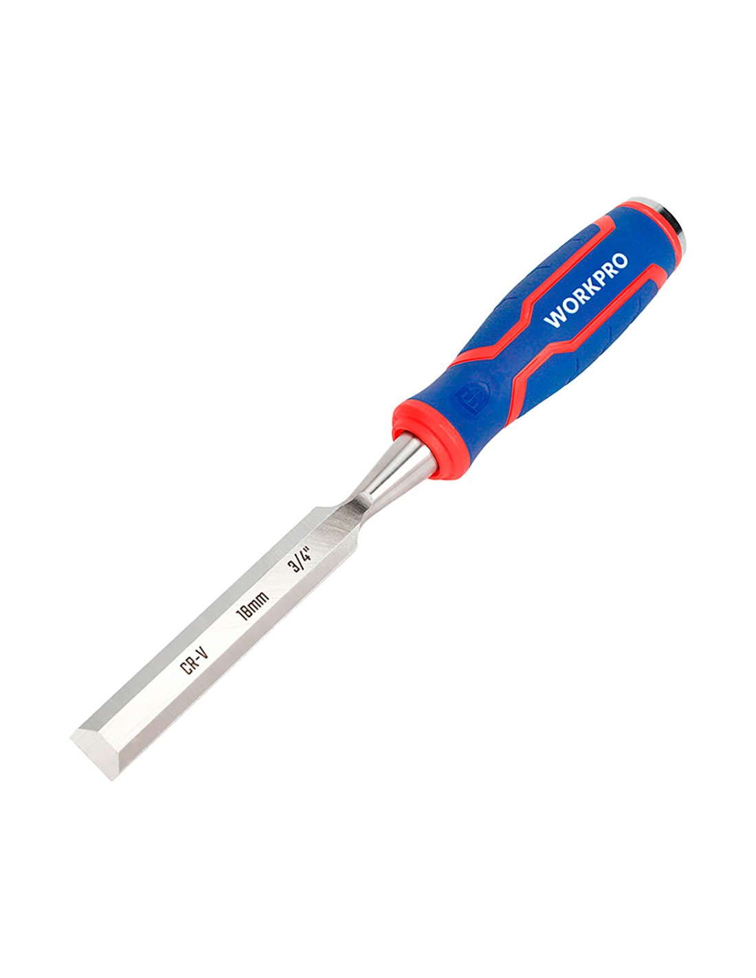 Formón para madera 18 mm hoja de acero al cromo-vanadio forjada, tratada térmicamente para retención del filo filo de la hoja un 30% más largo y afilado tope de acero diseñado para golpes fuertes con martillo o mazo mango de alta resistencia con agarre ergonómico