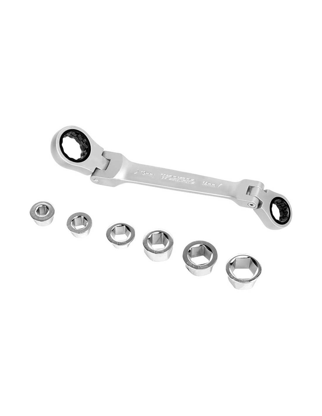 Llave de estrella cr-v doble con carraca articulada, 6 bocas intercambiables, 14 x 19 mm, 7 piezas