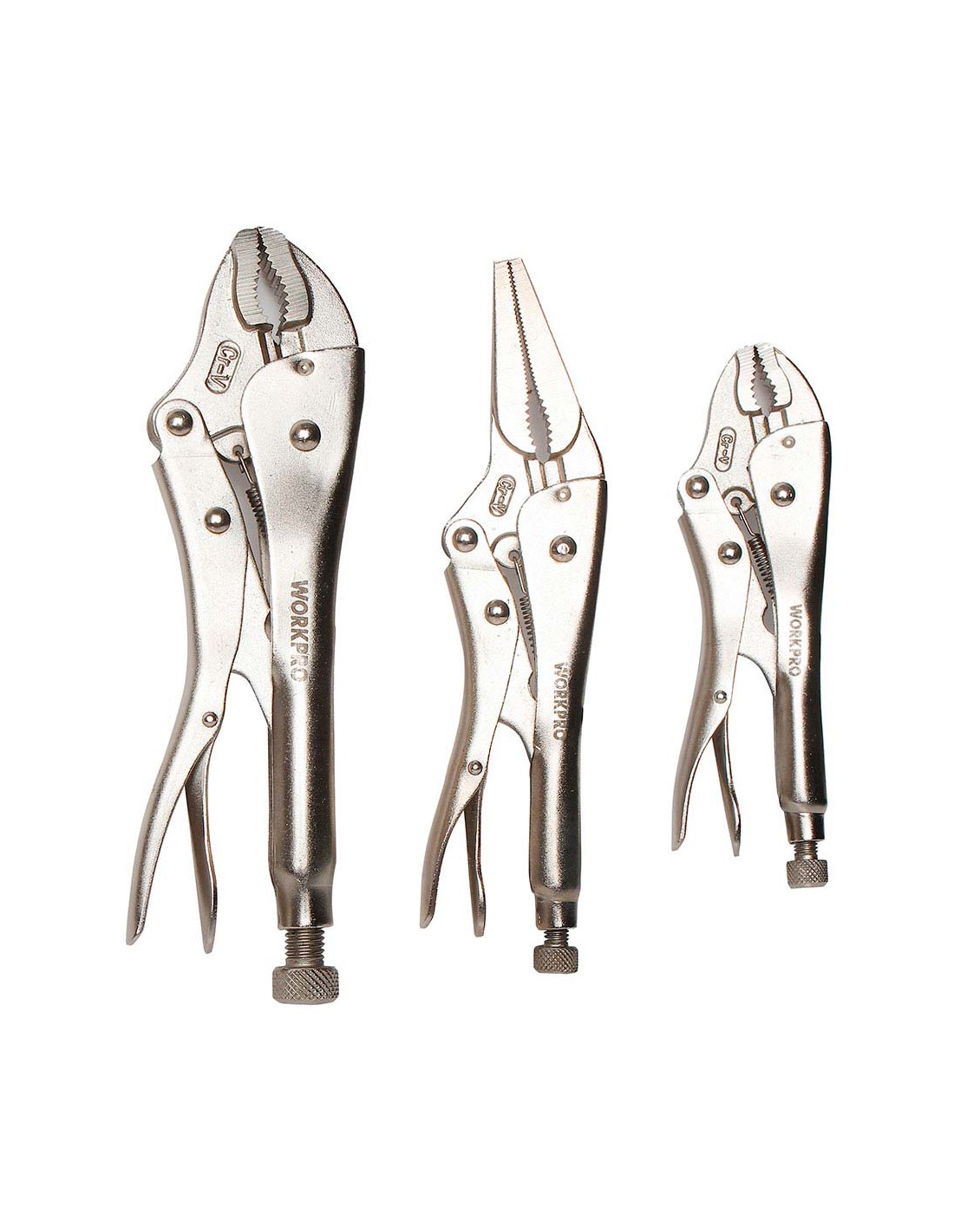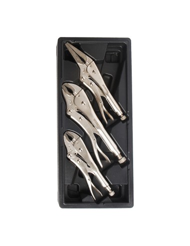 Juego de 3 alicates de presión que se compone de 1 ud alicates de presión de mordaza curva 180 mm 1 ud alicates de presión de mordaza curva 250 mm 1 ud alicates de presión de boca larga recta 225 mm, forjados al cromo vanadio, perilla ajustable, desbloqueo rápido