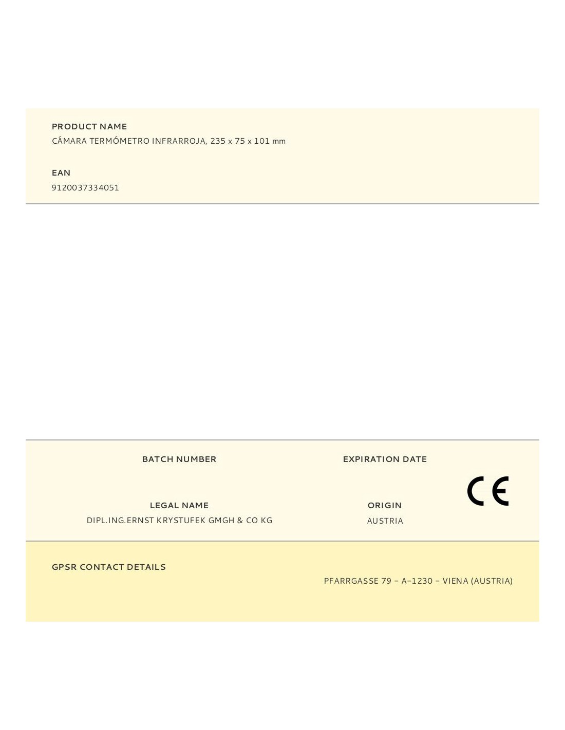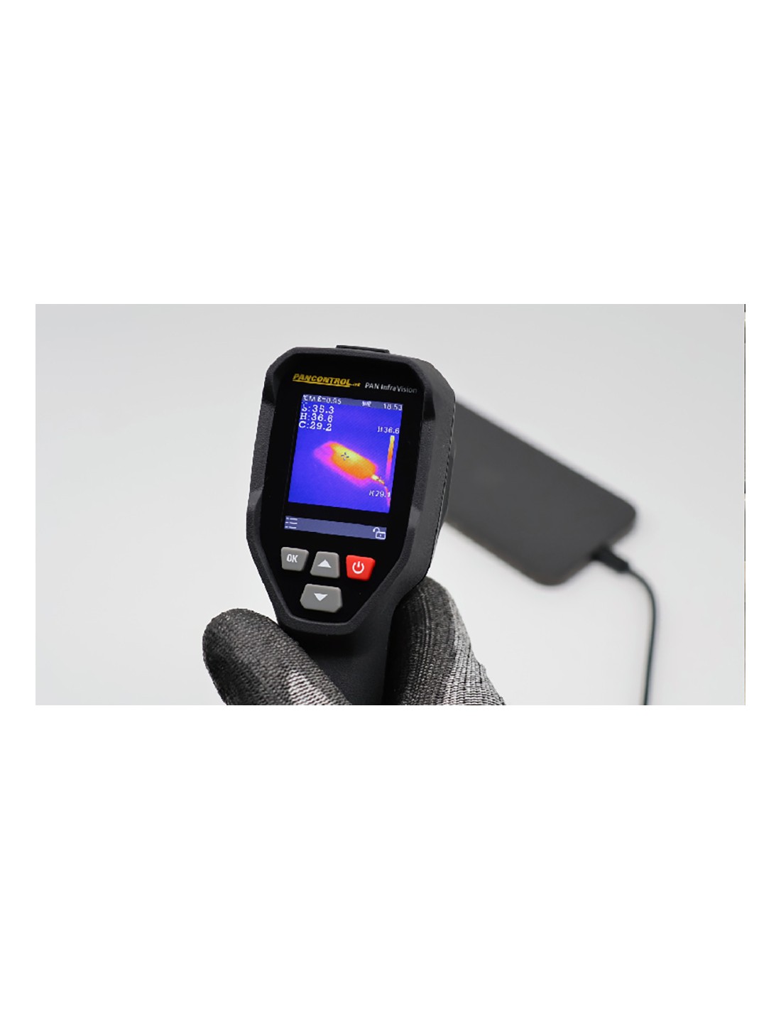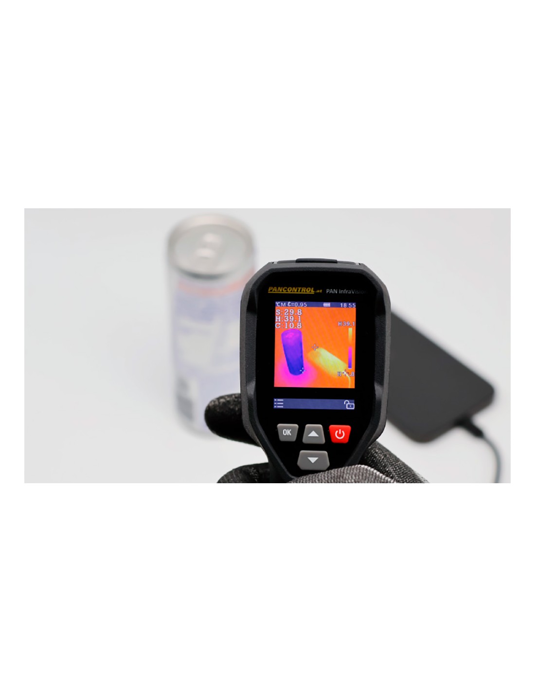 Cámara termómetro infrarroja 12:1 resolución: sensor 96 x 96 px, pantalla de 240 x 320 px y de 2 pulg ip54, memoria de valores mínimos/máximos, memoria de 3,5 gb, batería li-ion 3,7 v 2600 mah, recargable con cable usb-c incluido límites -20 y 550°c, precisión ±2°c ±2%, aplicación android & ios apagado automático, pantalla a color, incluye estuche de almacenaje, dimensiones 5,5 × 8 × 18 cm