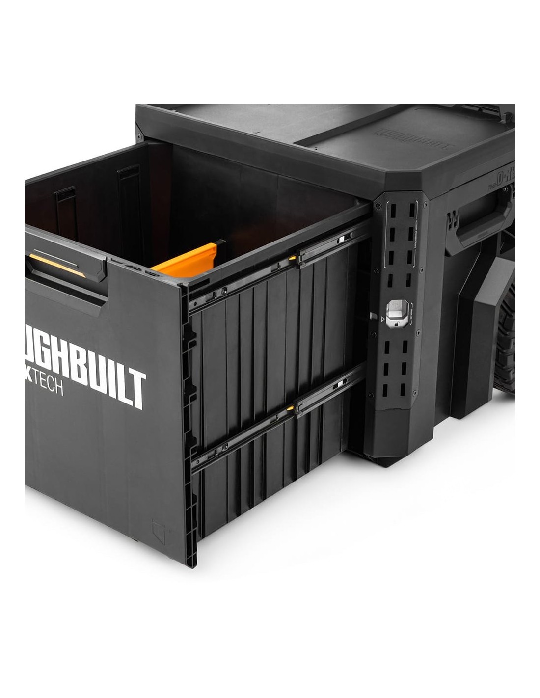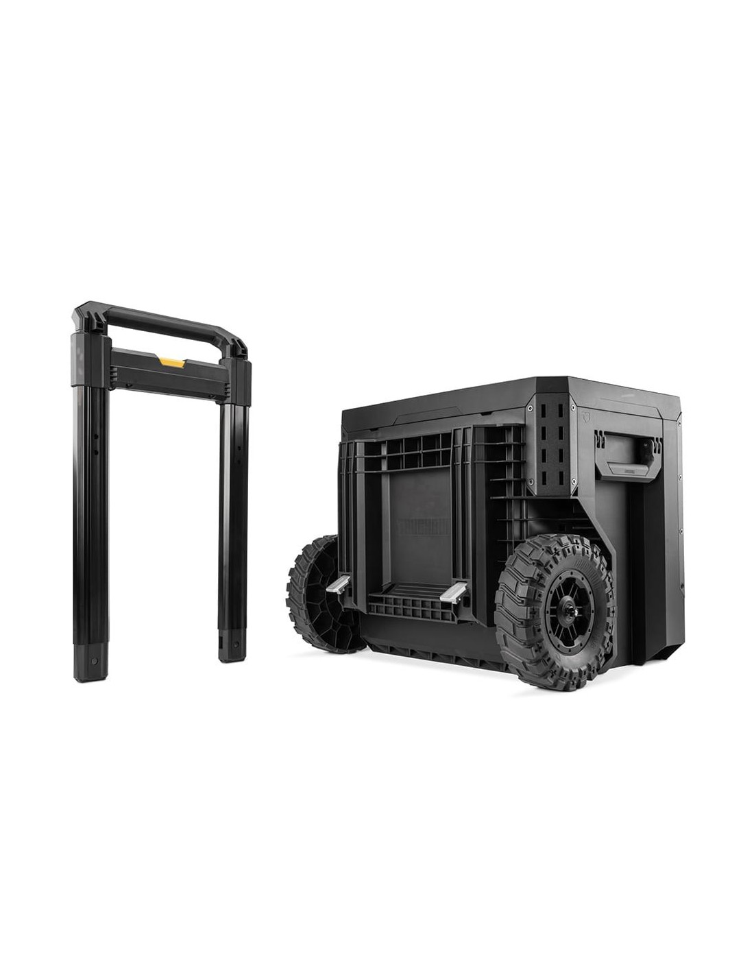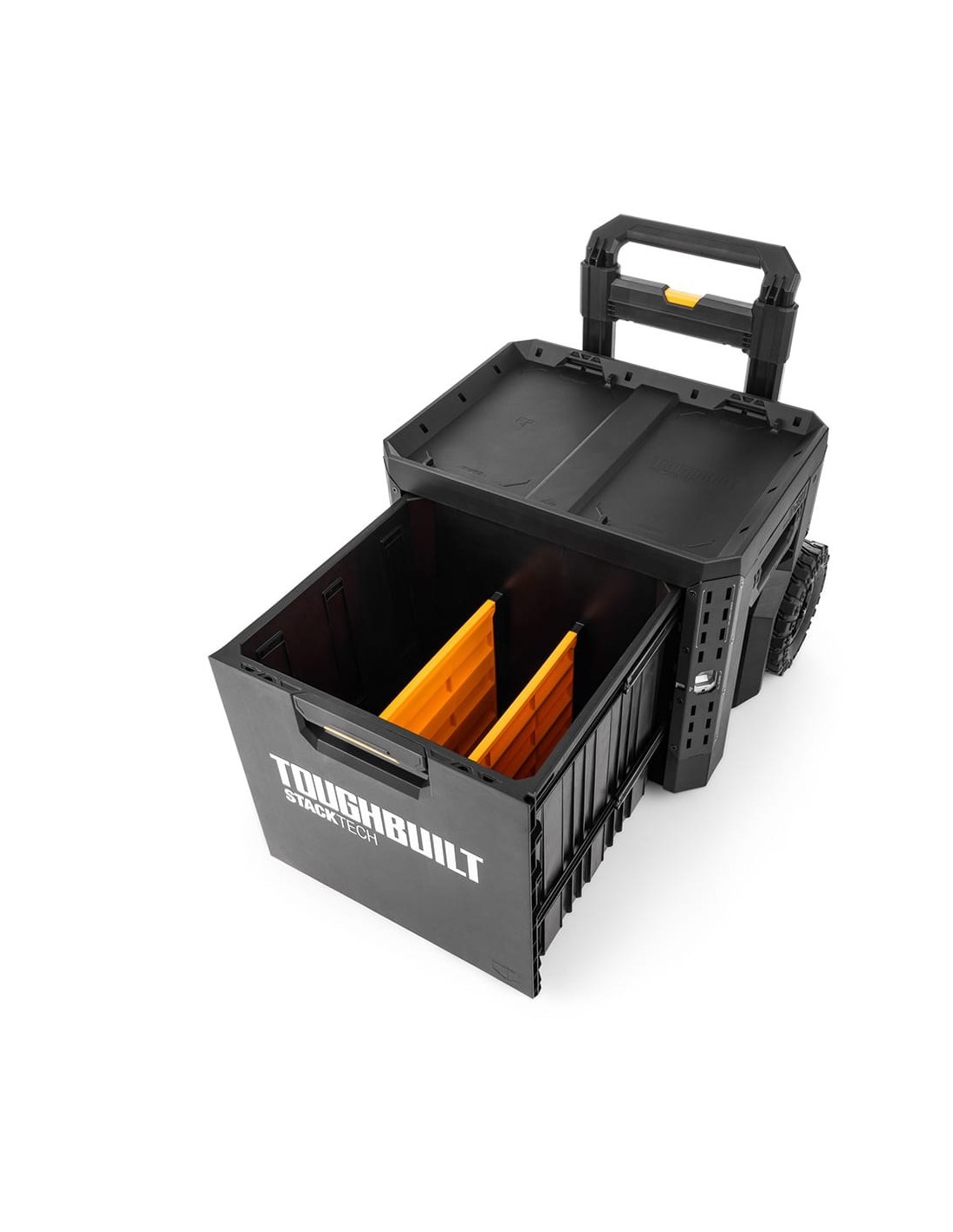 Maletín con ruedas de 1 cajón con cierre, stacktech estructura autoalineable y encajable que se adapta a herramientas eléctricas y estándar acceso rápido al almacenamiento sin desapilar la posición del cierre indica cuándo es seguro transportarla cierre deslizante apto para candado (no incluido) asas laterales robustas y abatibles rieles para complementos de liberación rápida polímero de alto rendimiento negro y esquinas de acero mango telescópico extraíble y 2 ruedas todoterreno 22 cm incluye 2 separadores capacidad 113 kg dimensiones cajón: 53 x 40,5 x 45 cm dimensiones cerrado: 57 x 48 x 67 cm dimensiones abierto: 57 x 41 x 111,8 cm