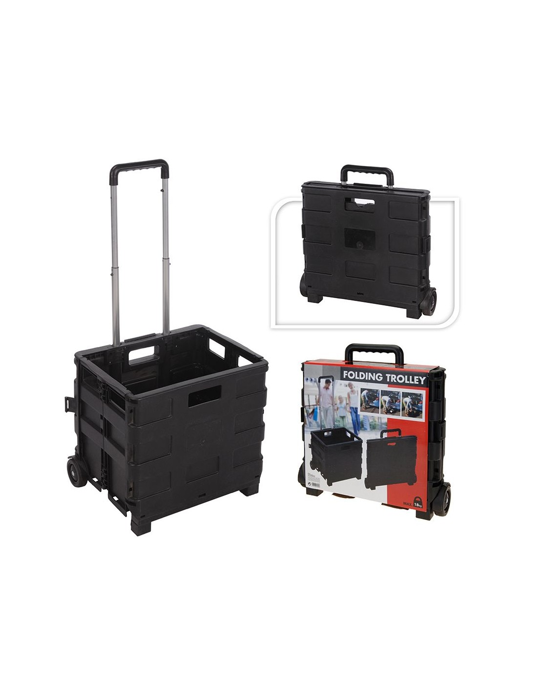 Trolley plegable de aluminio con caja plegable negra pp, capacidad 30 l. peso max 18 kg. dimensiones 38 x 36 x 30 cm