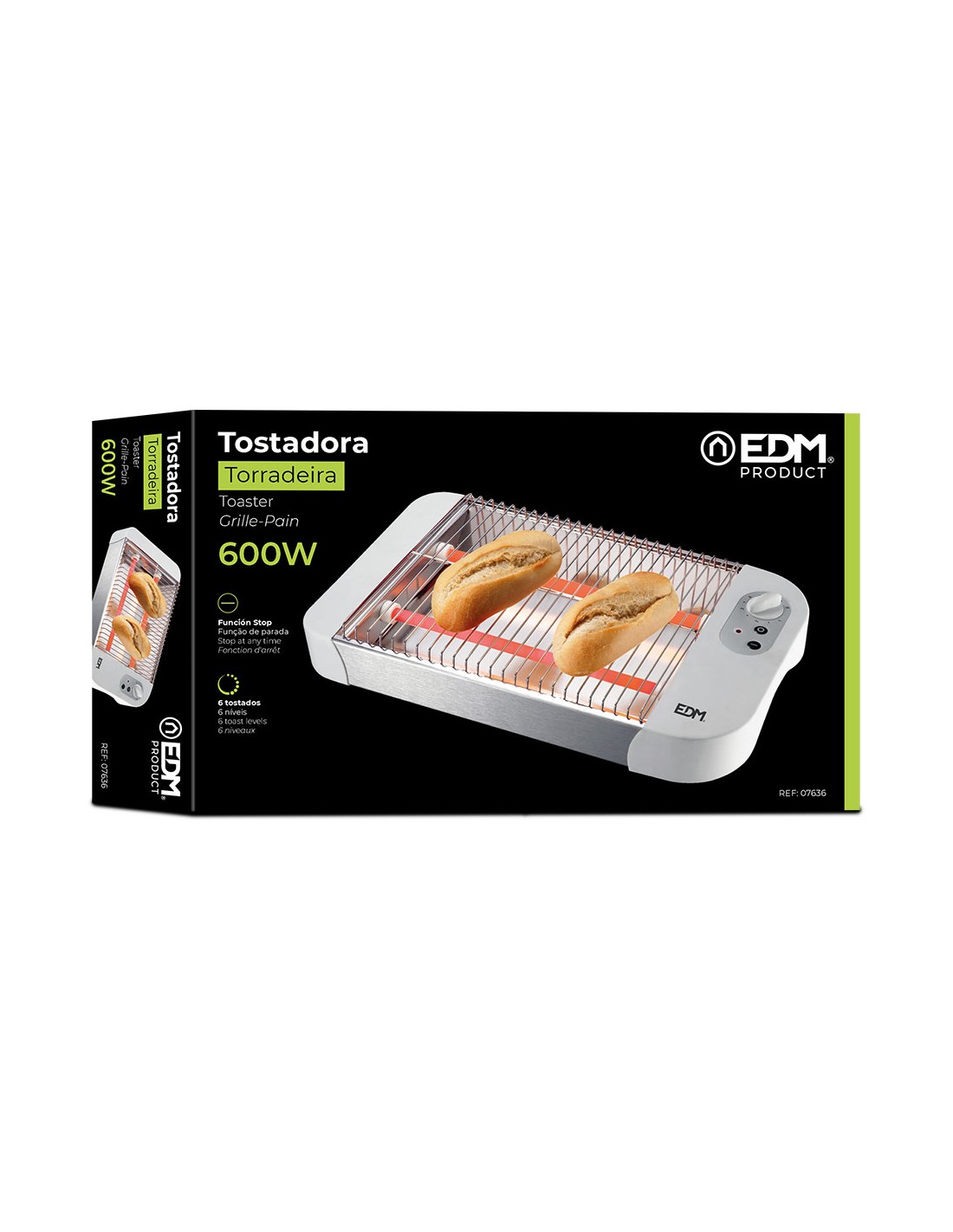 Multitostador con temporizador potencia: 600w. 6 temperaturas de tostado. temporizador con señal acustica. posibilidad de tueste de cualquier tipo de pan. recipiente recogemigas. dimensiones: 35,5x21x6cm (ancho/fondo/alto). 220-240v edm