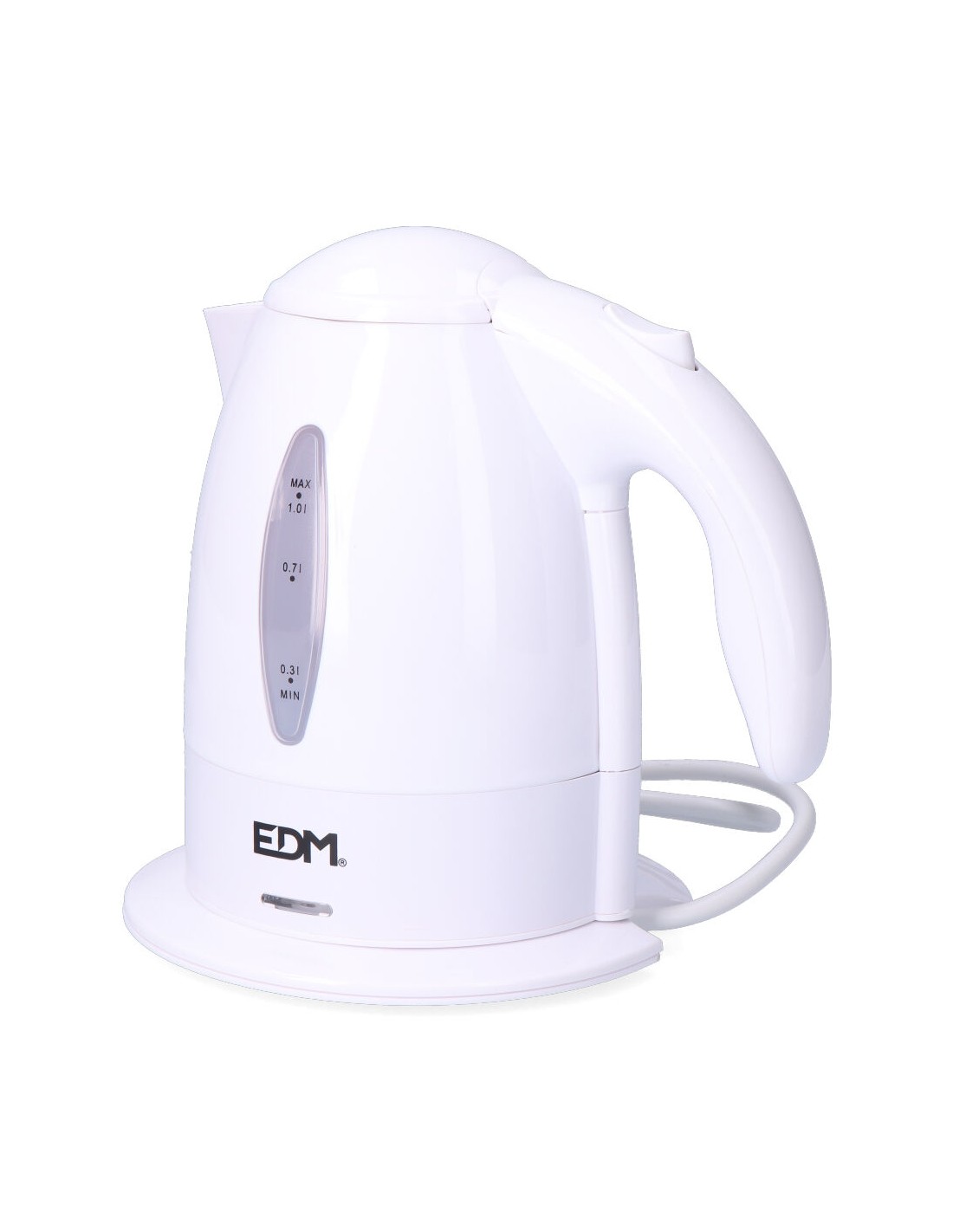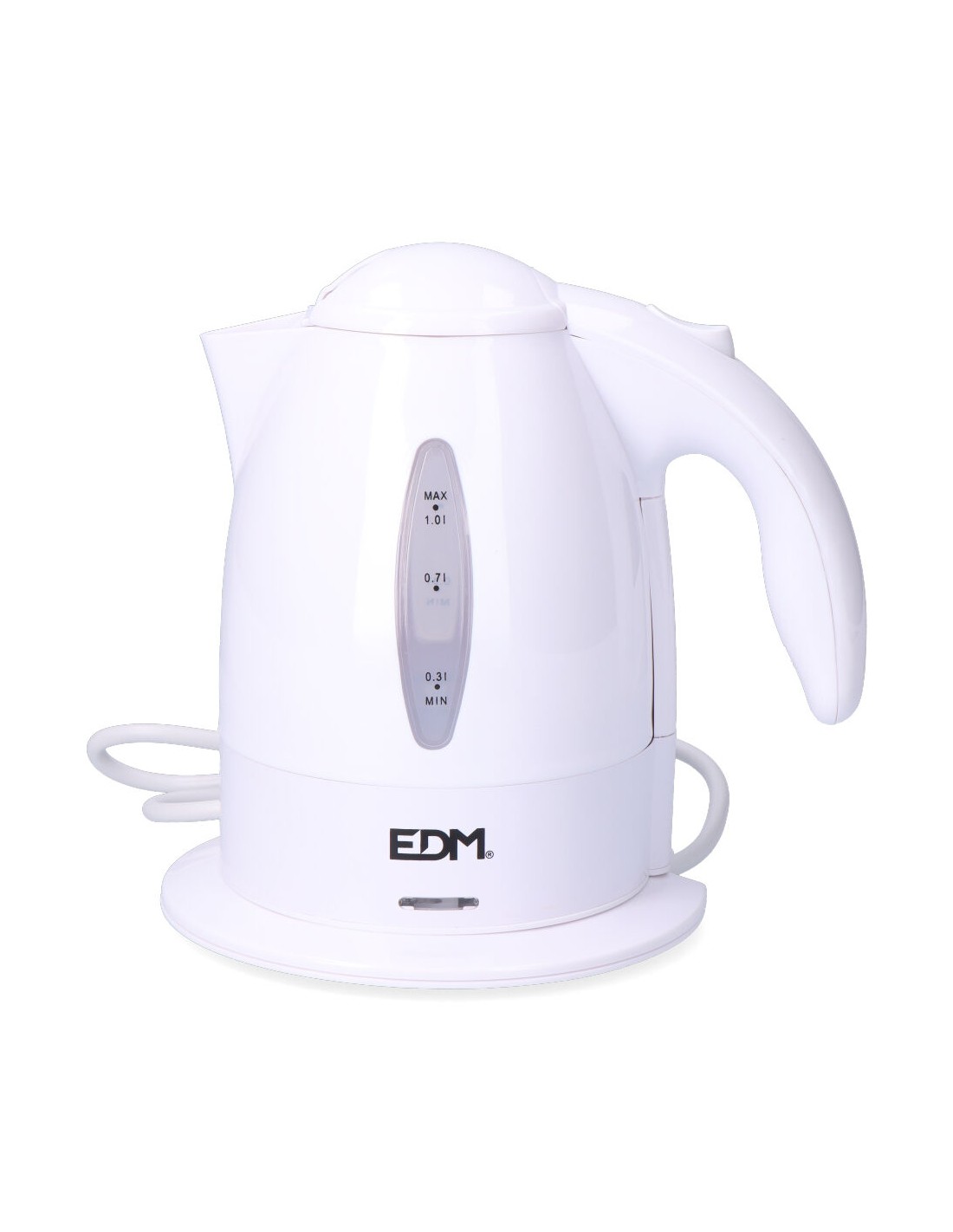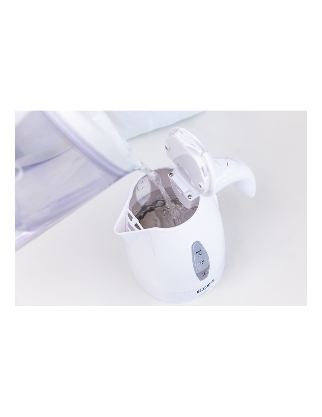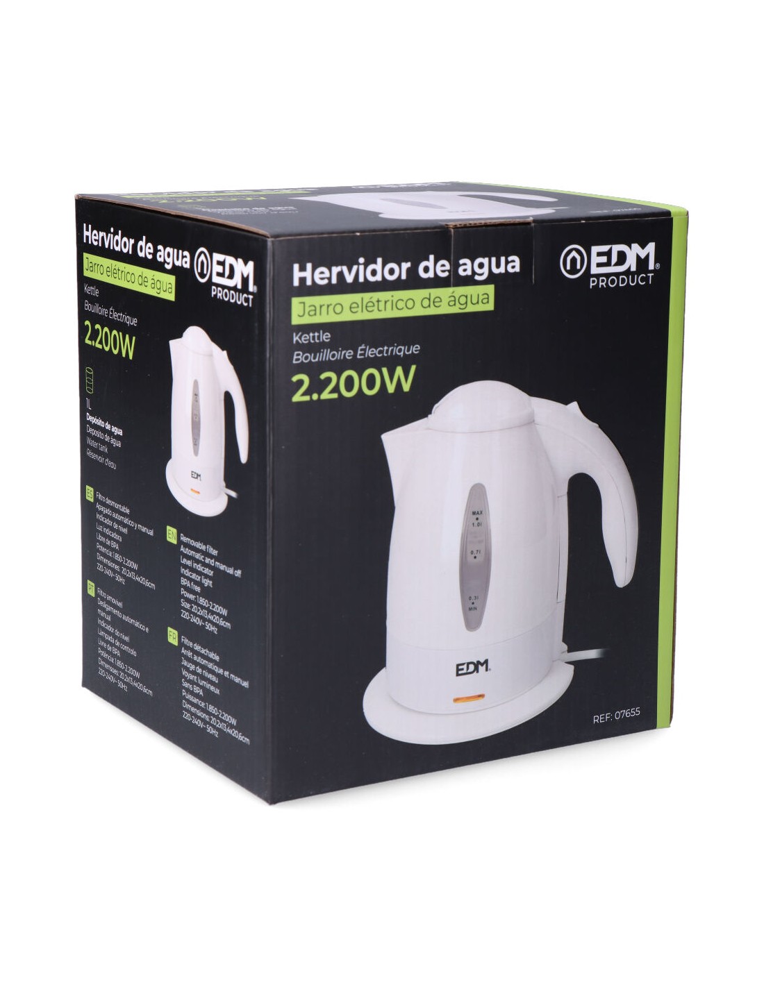 Hervidor de agua electrico "kettle" potencia: 2200w.1l. filtro desmontable. apagado automatico y manual. indicador de nivel. piloto luminoso. dimensiones: ø17,5x20cm (diámetro/alto) 220-240v 50hz edm. libre de bpa