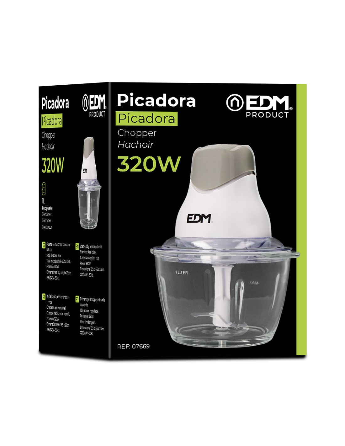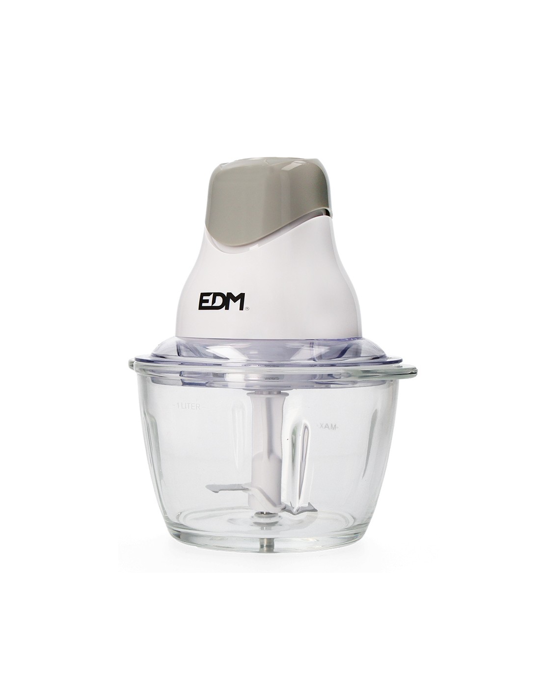 Picadora con recipiente mezclador de cristal. capacidad: 1l. potencia: 320w. cuchillas de acero inoxidable. dimensiones: ø16x24.5cm. (diámetro/alto) 220-240v 50hz edm